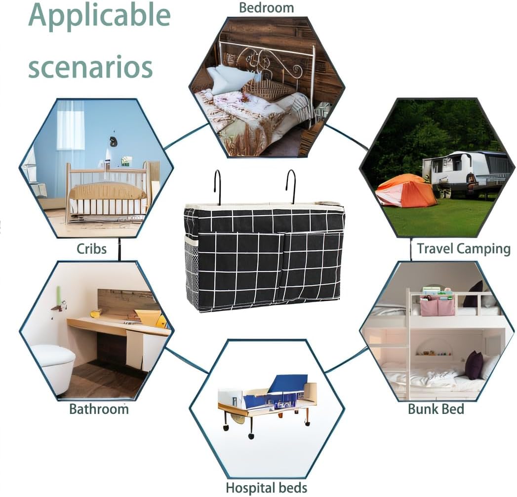 • 【Multi-scene Application】This bed caddy organizer is Perfect for bedrooms, dorm bunk beds, hospital beds, crib rails, RVs, and more. The caddy can secure attachment to bed frames,or railings, saves space and ideal for compact living.