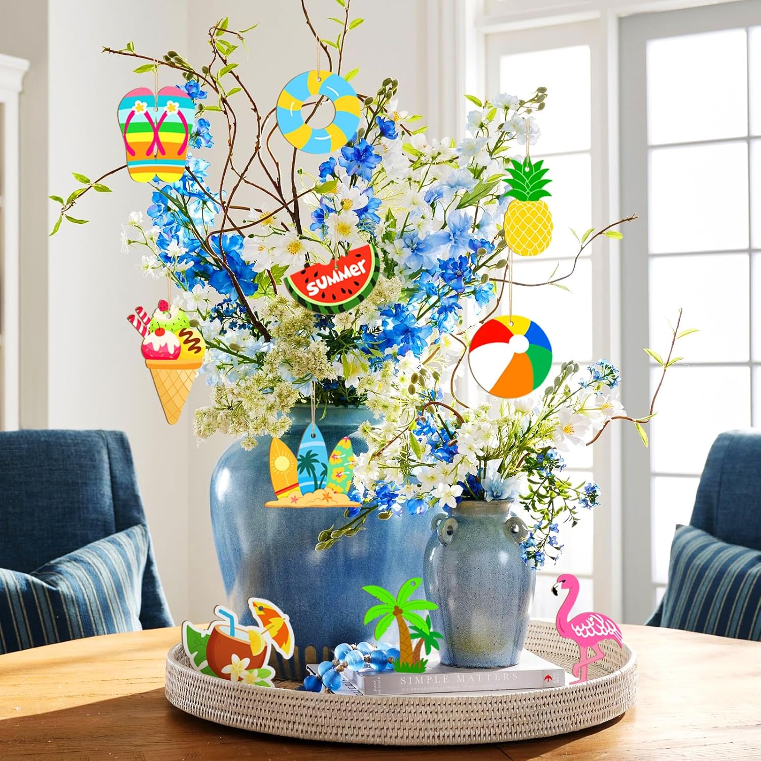 36PCS Wooden Summer Ornaments to Paint, 12 Styles DIY Blank Unfinished Wood Beach Cutouts Ornament for Crafts Hanging Decorations, Watermelon Surfboard Slippers Coconut Tree Home Decorations Gifts