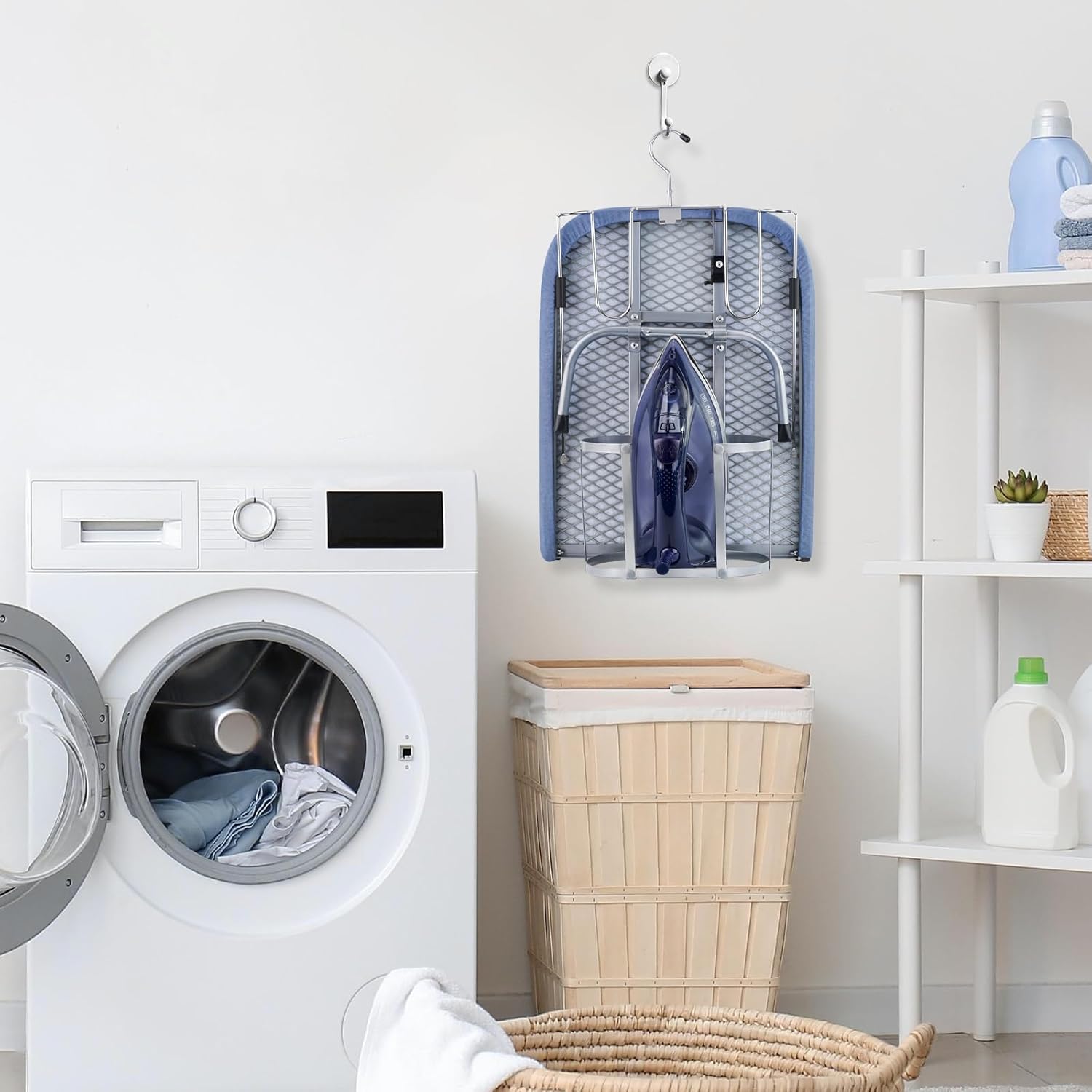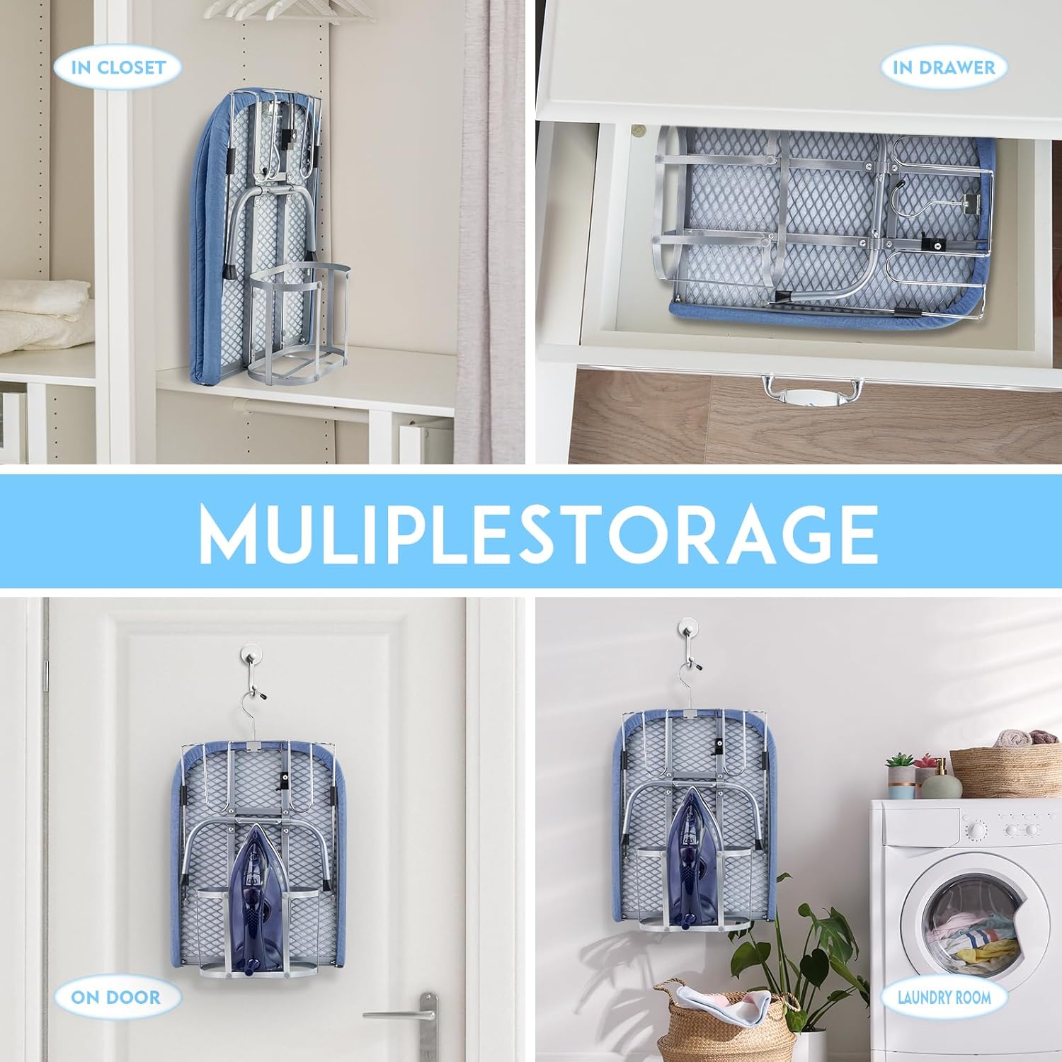 • SPACE SAVING MULTI- Scene Hero- this mini ironing board fits seamlessly into laundry rooms, dorm closets, or luggage. Its ultra-slim profile slides under beds, tucks into cabinets, or hangs vertically with the built-in elastic hook – perfect for apartments, RVs, or hotel stays.