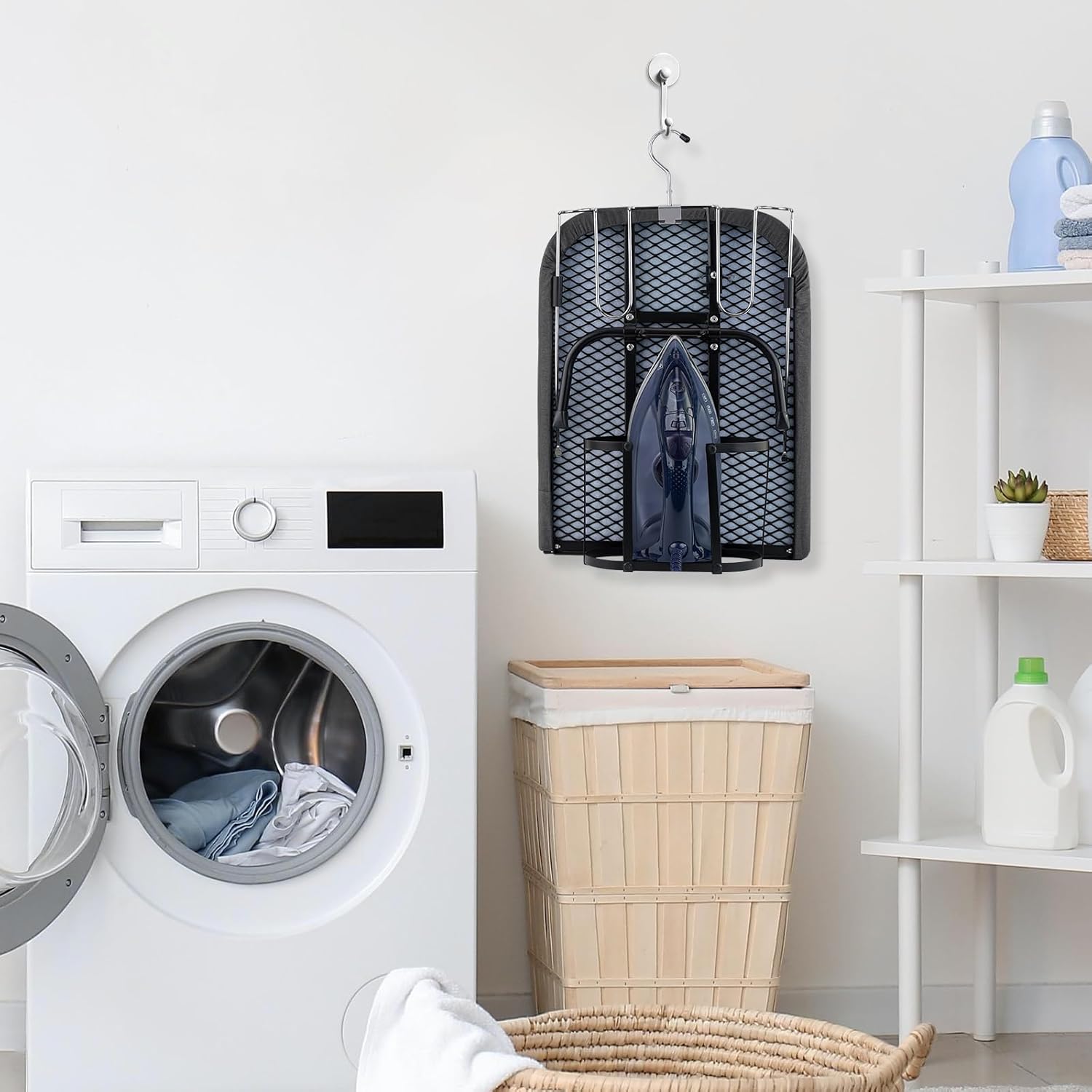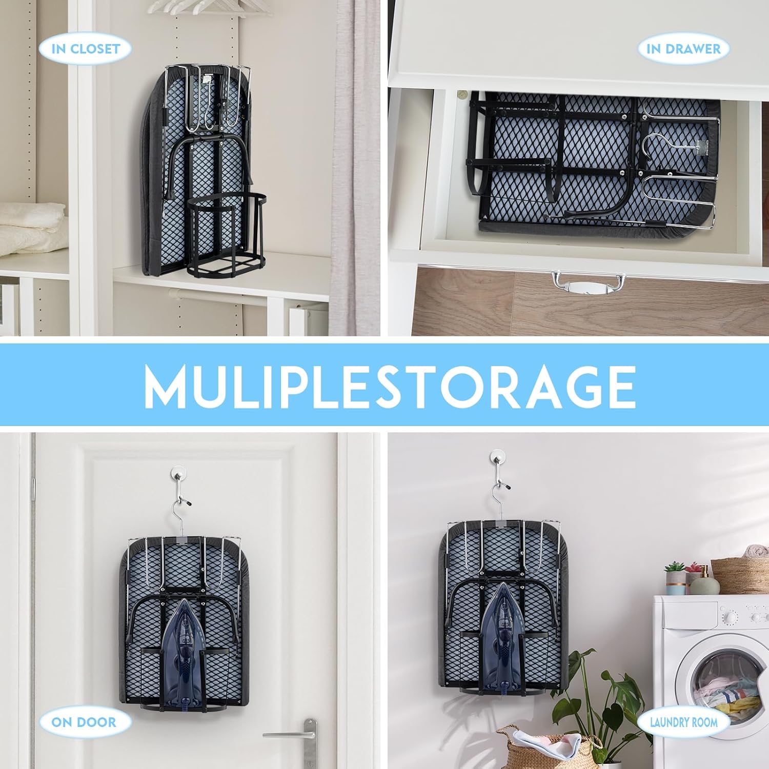 • ALL IN ONE STORAGE STABILITY- Iron and ironing board set never lose your iron again! When using a small ironing board, pulling out the iron holder can place the iron. Even if the iron is still warm after ironing, it can be placed directly in the storage basket. No more worries about storing irons