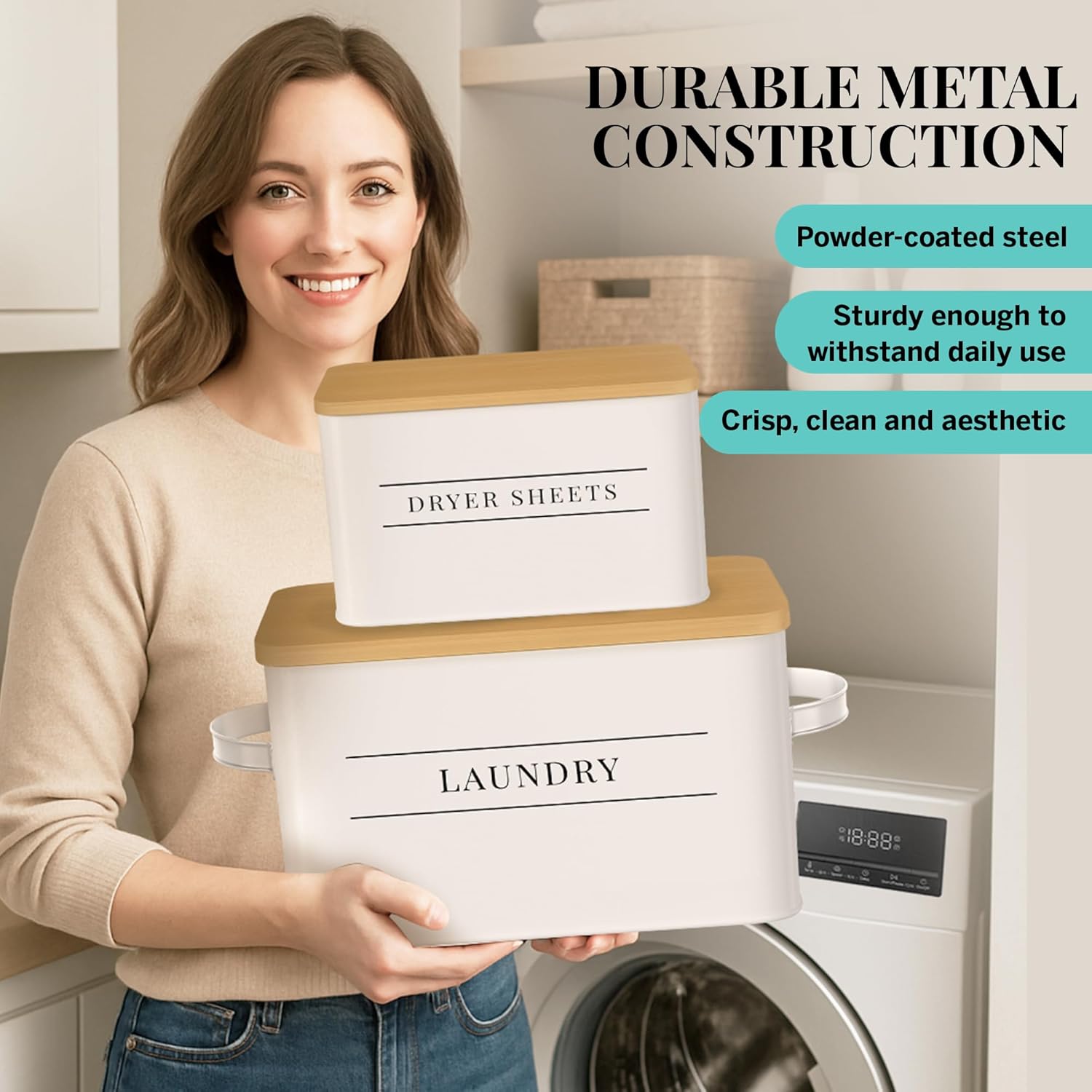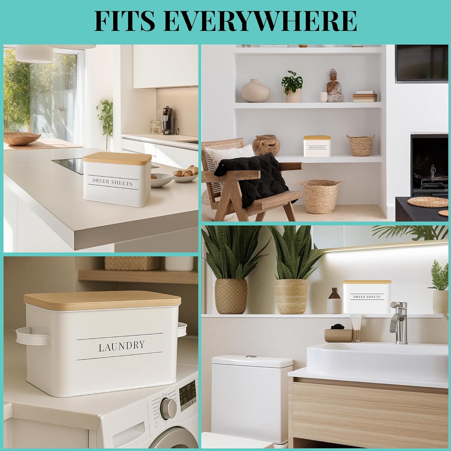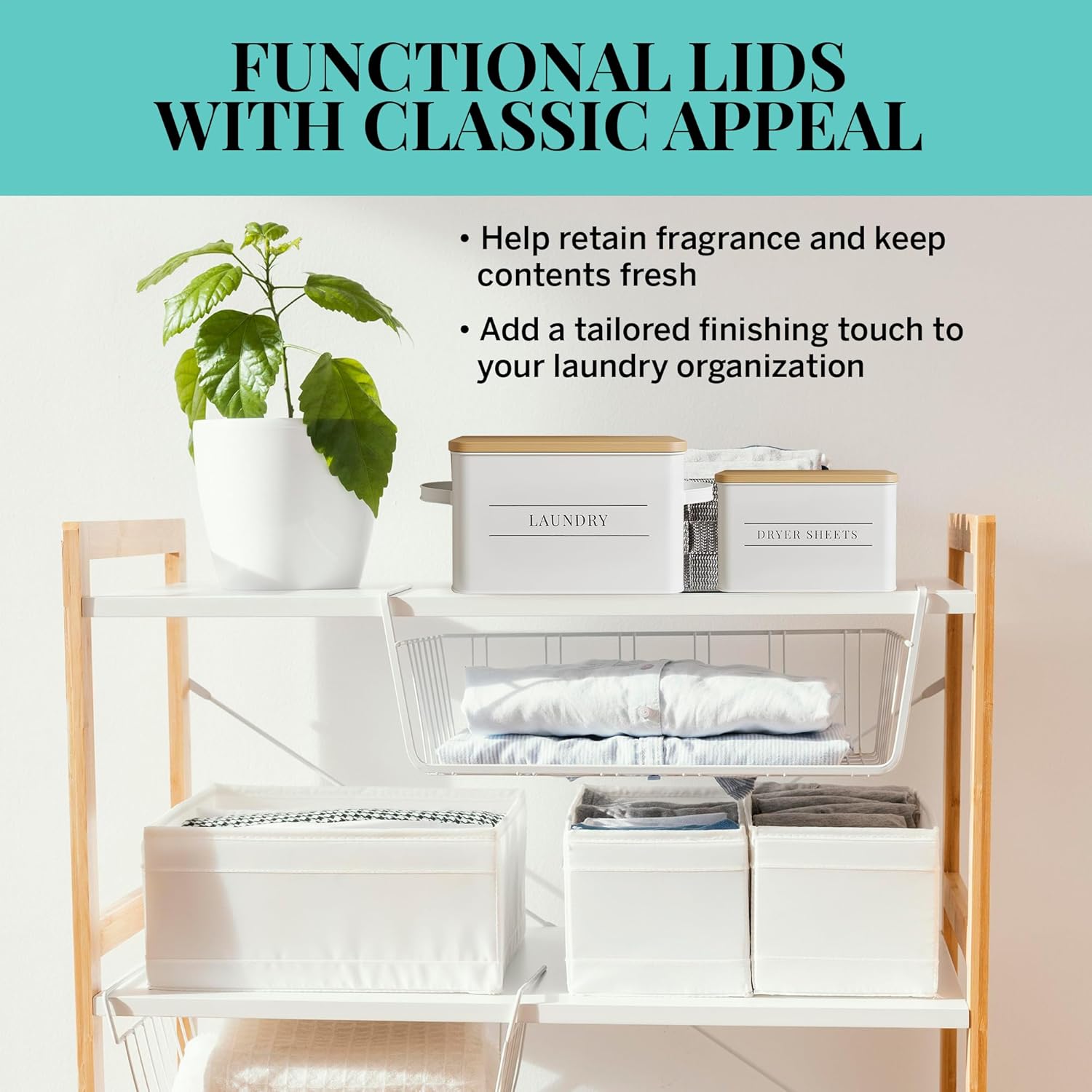 • Set of Two for Coordinated Charm – Includes two matching bins with secure-fitting lids, ideal for holding dryer sheets, scent boosters, clothespins, or other laundry essentials.