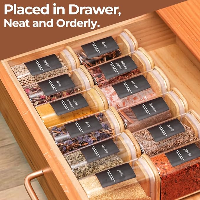 • Better Sorting with Labels: Glass spice jars come with writable, erasable and reusable labels, easy to read and organize at a glance; Blank stickers let you DIY your own jars—create a curry mix jar, white pepper and chili powder jar, or even a tea jar