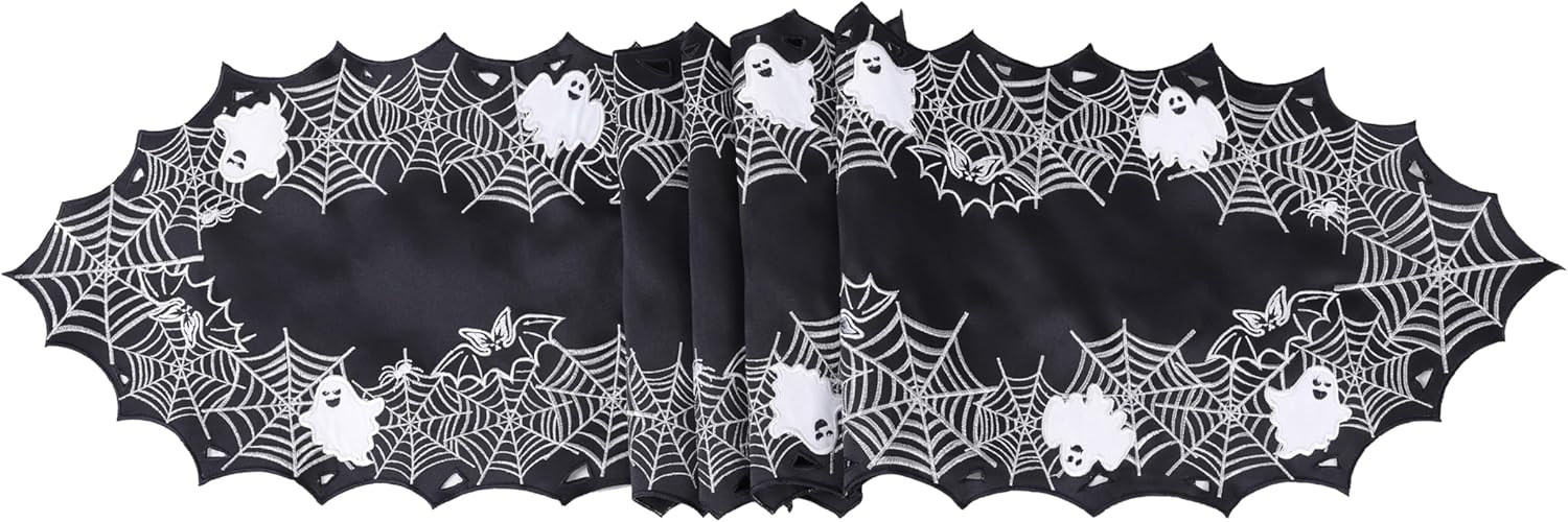 Chlophy Halloween Table Runner Black Spider Web Table Runner Gothic Embroidered for Kitchen Dining Halloween Décor Home Party Table Decoration 72in