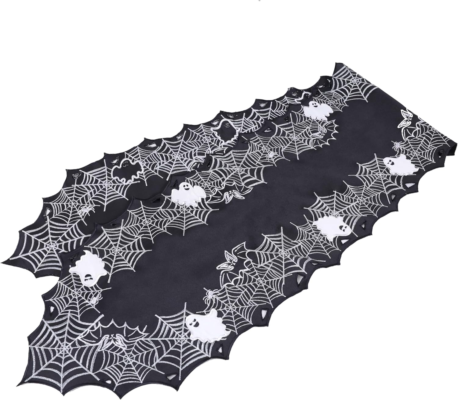 • 🖤 Versatile Seasonal Accent – Whether you're going for a chic gothic look or full-on haunted mansion vibes, this embroidered spiderweb table runner ties your Halloween décor together in a fun yet refined way