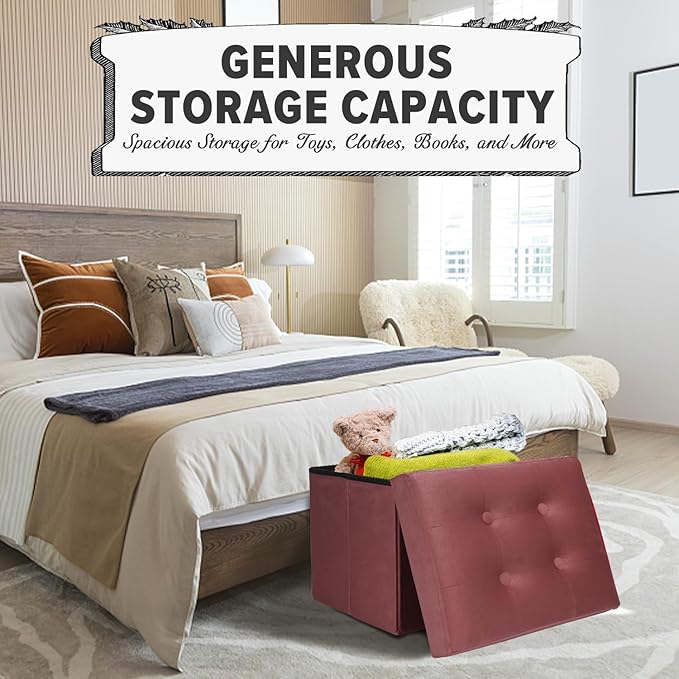• 【Large Storage Space】 It is made of high quality fiberboard frame, so you can sit on it with confidence. It's perfect for your bedroom or living room. Whether used as a under desk foot rest or as living room storage, this ottoman foot rest provides maximum comfort. The velvet folding footstool serves as a ottoman with storage for living room to store Christmas gifts and children's toys, blankets, cushions, books and sports equipment. It helps to keep the room organized and neatly hide clutter