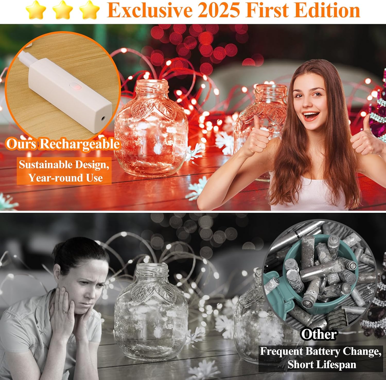 • Tangle-Free & Water-Resistant: Say goodbye to messy wires! These IP65-rated mini LED fairy lights battery operated feature tangle-free reinforced wiring that withstands humidity, perfect for mason jars and indoor plants. Built to last, they outshine ordinary battery string lights. Note: the included power bank is not waterproof—keep it dry for safe use