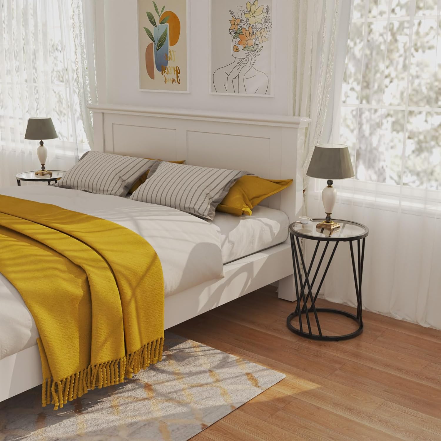 • 【Superior Quality】This modern side table features a durable 5mm shatter-resistant tempered glass top and sturdy metal legs, ensuring long-lasting use for everyday living. The round glass top is easy to clean and worry-free about sharp corners.