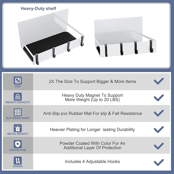 • Easy to Use for Saving Space: our magnetic shelves do not need drilling or installation, you just need to open the package, put the non slip pad on the shelf, and then secure it to the metal surface; The compact and efficient design of this 12 x 6 x 6 inches magnetic tool box serves as a space saving solution, helping keep your working area neat and decluttered