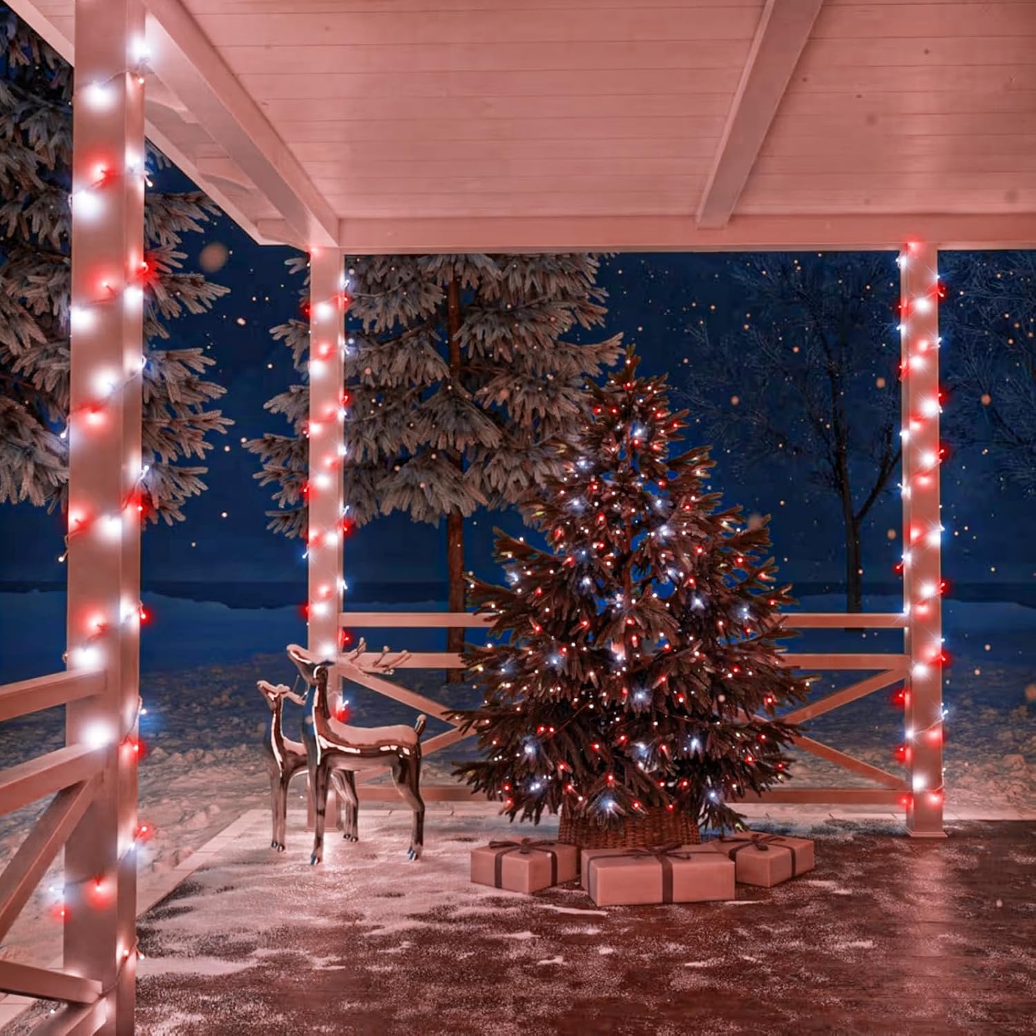 • Waterproof Fairy Lights Plug in: The red and white Christmas lights design with IP44 outdoor waterproof, can withstand wind, snow, rain and extreme weather. String lights are equipped with a UL certified 29V low-voltage plug ensures the safety. It's safe for family with kids or pets!