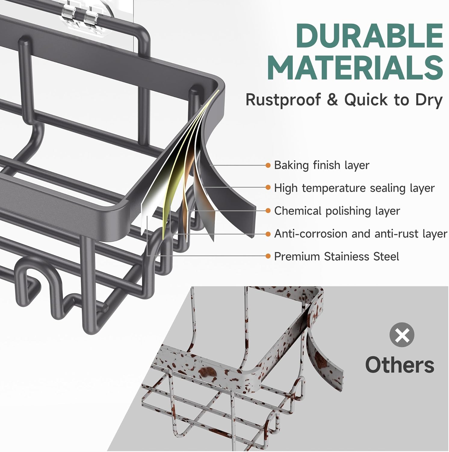• Waterproof & Rust-Resistant: Engineered with waterproof and rust-resistant components, this caddy maintains its quality and appearance over time, even in damp environments