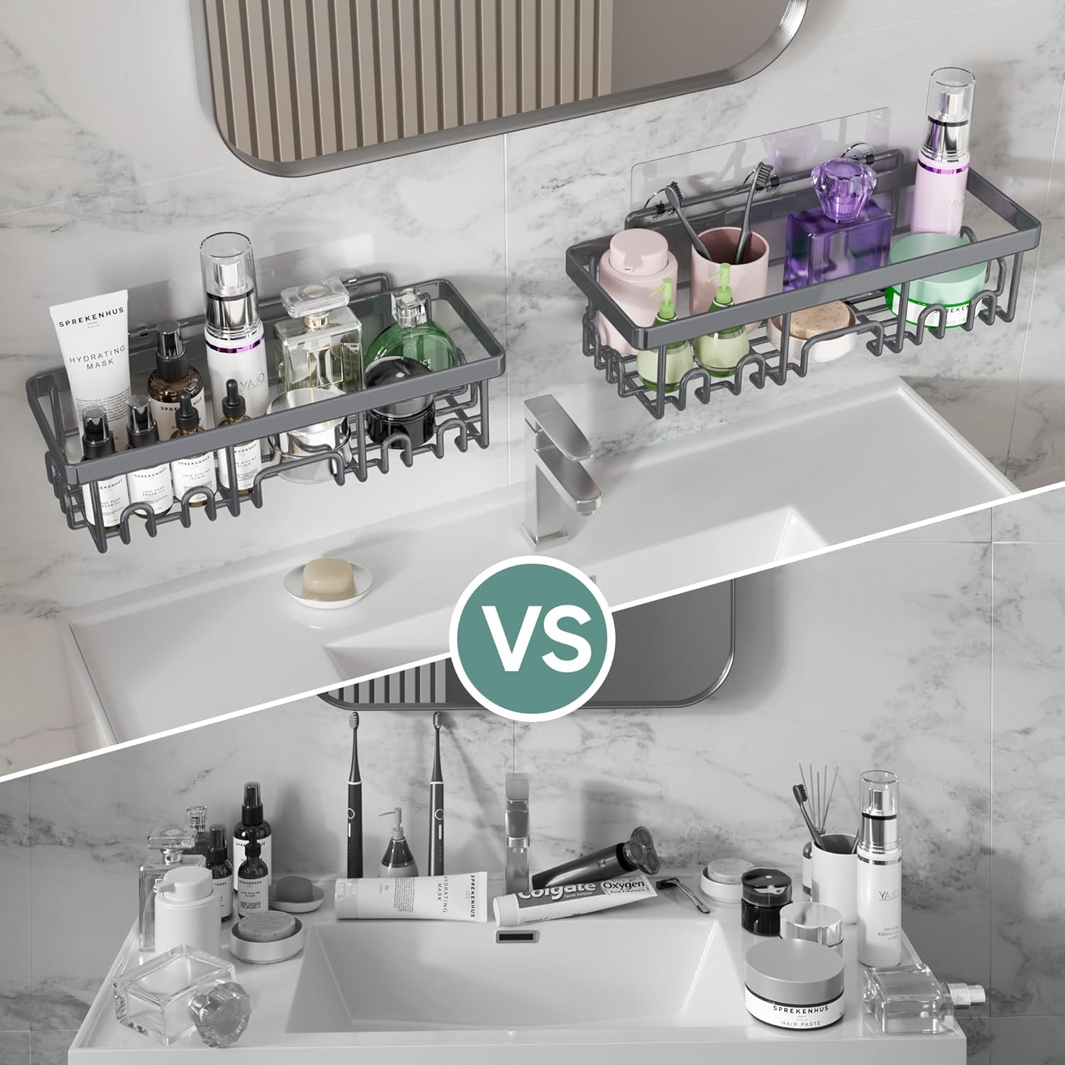 • Comprehensive Organization: This 6-piece set includes large, medium, and small caddies, along with soap and toothbrush holders, providing versatile storage for all your shower essentials