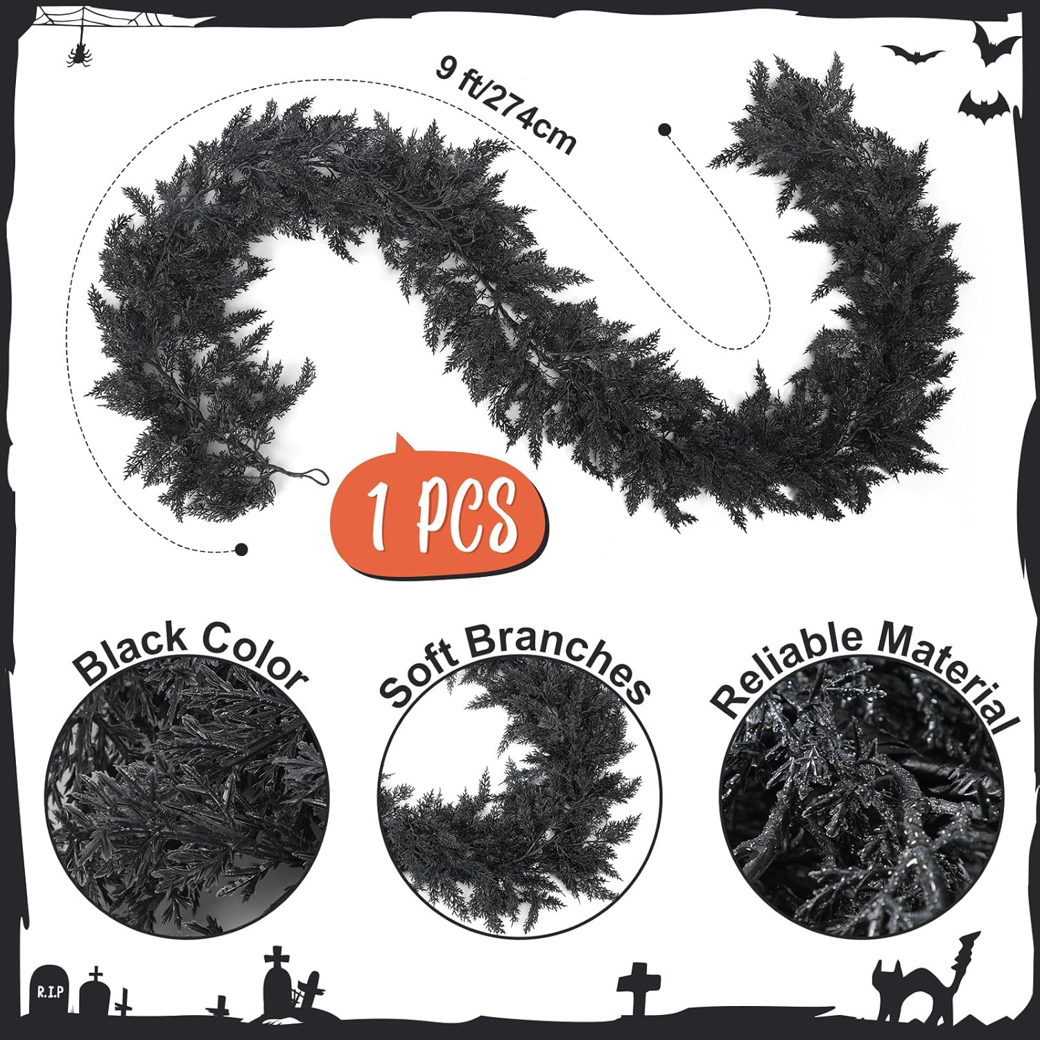 • Suitable Length: Measuring a generous 9 feet, this black cedar garland allows flexible decorating options - wrap it around stair railings, layer it across long tables, or hang it along porch railing to amplify your Halloween décor