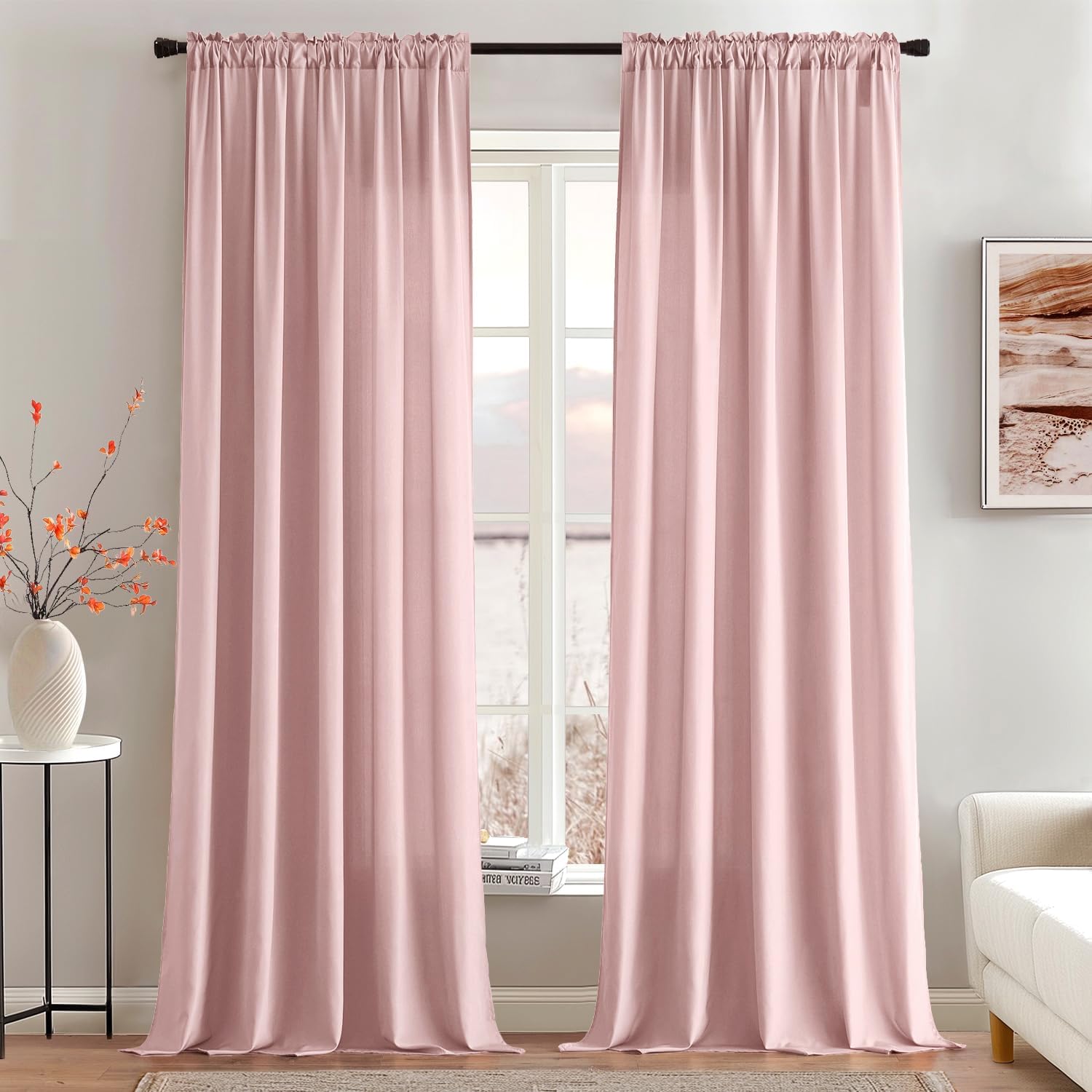 MIULEE Baby Pink Privacy Sheer Curtains That Let Light in 96 Inches Long Non-See-Through Semi Sheer Curtain Light Filtering Window Curtains Drapes for Living Room Bedroom 2 Panels Set 42 X 96