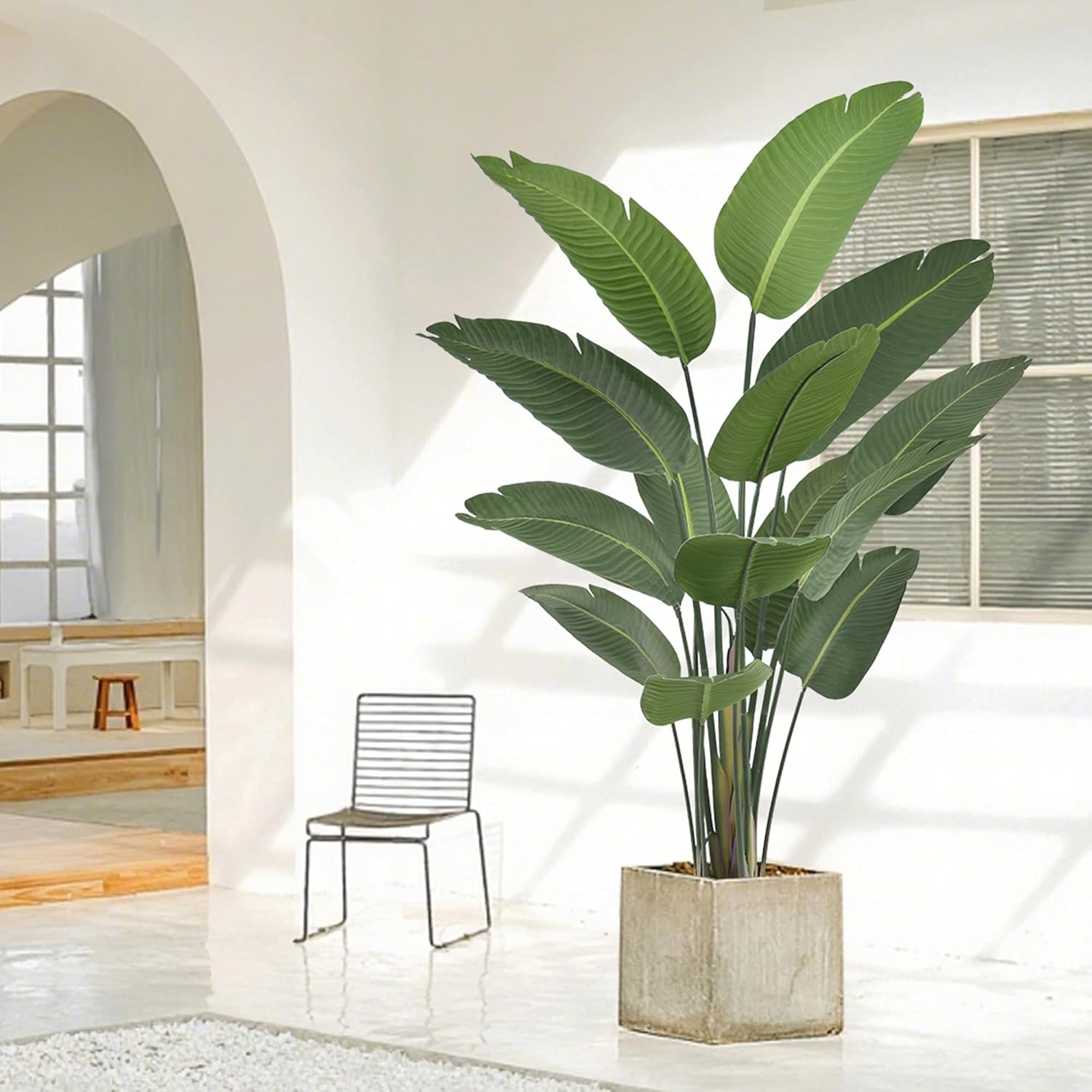 • Indoor Decor: Artificial Bird of Paradise Tree provides timeless home décor as a realistic fake plant, odorless and indelible, this large artificial plant is perfect for a variety of environments including living rooms, bedrooms, kitchens, entrances, patios, cafes, bathrooms, offices, malls, and doorways and corners