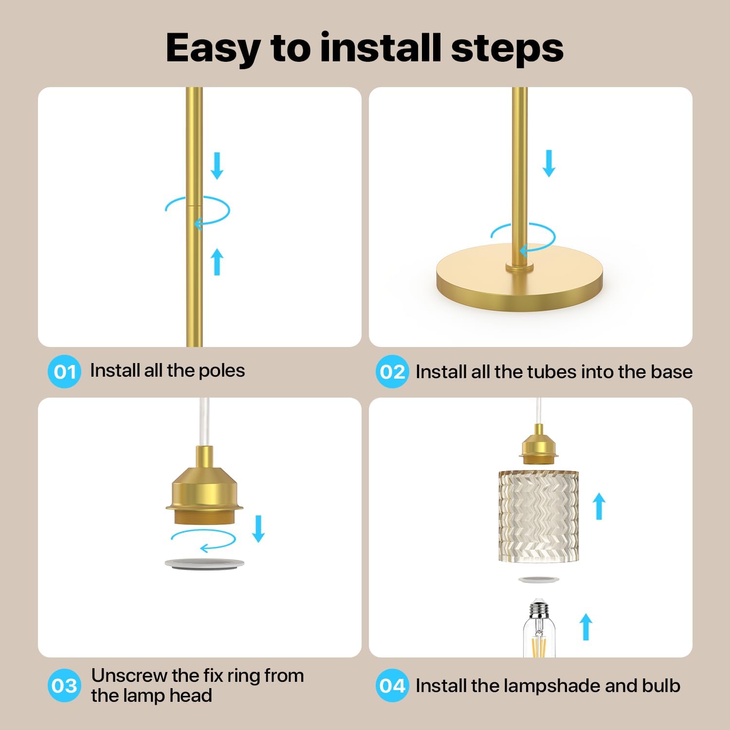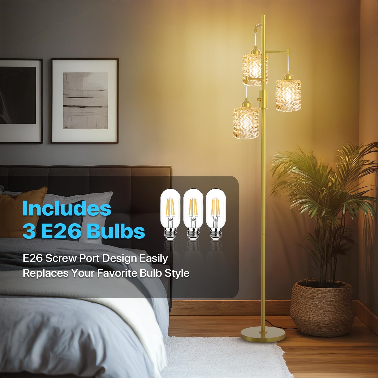 • Ready-to-Use Convenience: This gold crystal floor lamp comes with 3 matching E26 bulbs—no extra purchase needed. Simply unbox, install, and start using it right away. It saves you the hassle of choosing bulbs, so you can enjoy the beautiful glow of this floor lamp sooner