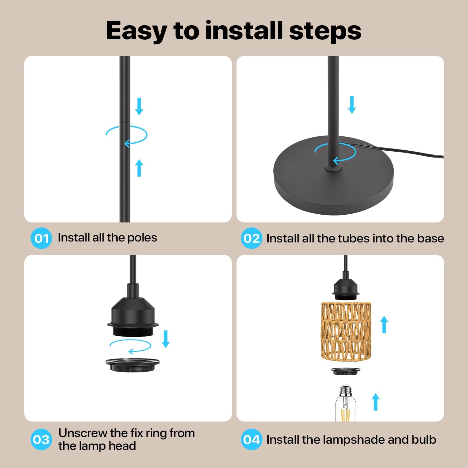 • 【Zero Hidden Costs】 3 premium E26 bulbs included—save $15+ vs buying separately. The versatile socket works with dimmable/color-changing bulbs, future-proofing your boho floor lamp