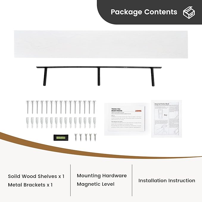 • Easy to Install - We provides everything you need for a hassle-free installation. Inside, you will find a level, screws for the wall, drywall anchors, screws to tighten the shelf, one metal brackets, and one exquisite handcrafted pine shelves. A detailed installation guide accompanies these components, ensuring a smooth process. Please contact us at Amazon or Fun Memories with any questions or concerns. Your satisfaction is important to us!
