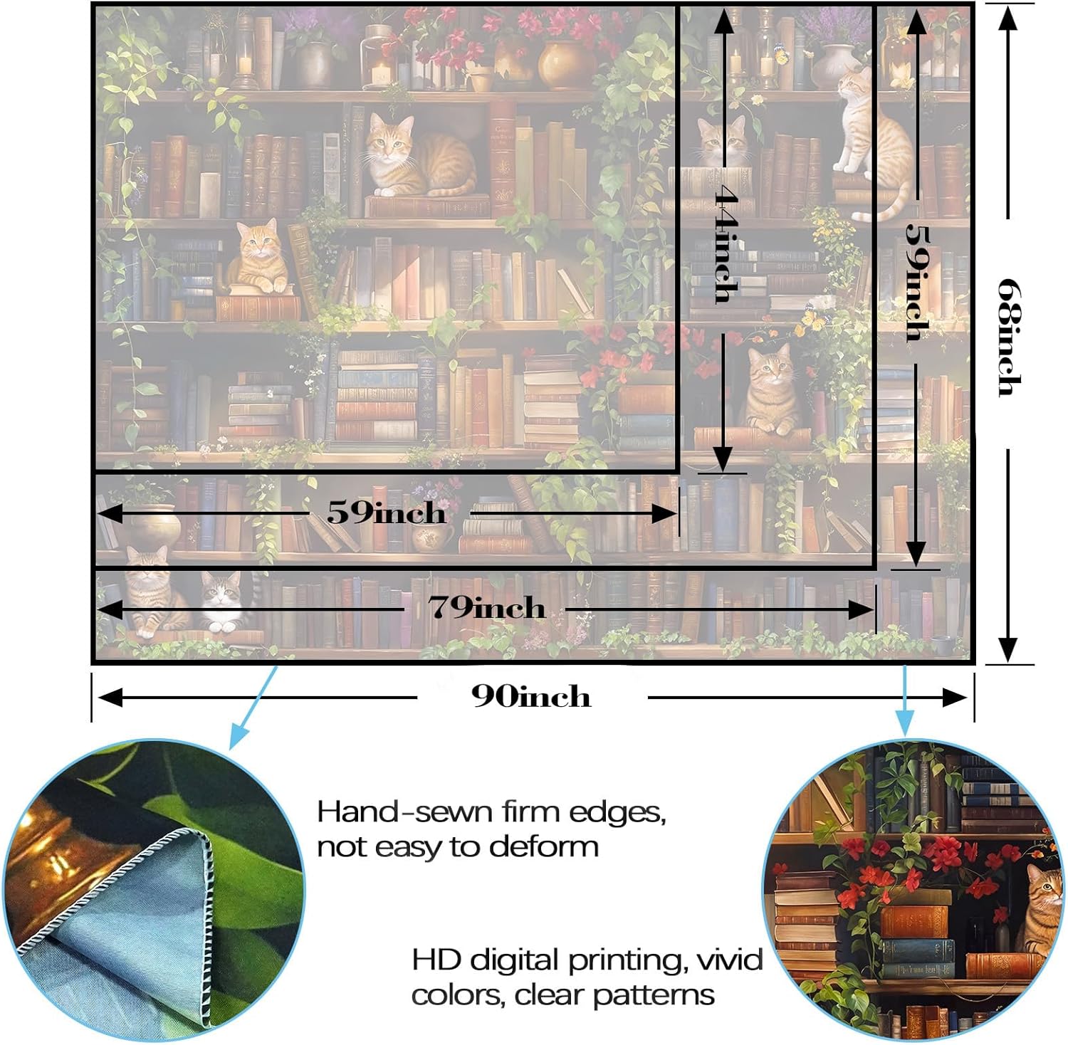 • Multiple Size Options: Available in 90L''x 68W'', 80L''x 60W'', and 60L''x 44W''(L for longer side, W for shorter side). These book tapestries fit various spaces—from large living room walls to small bedroom accents, ensuring a tailored decor solution