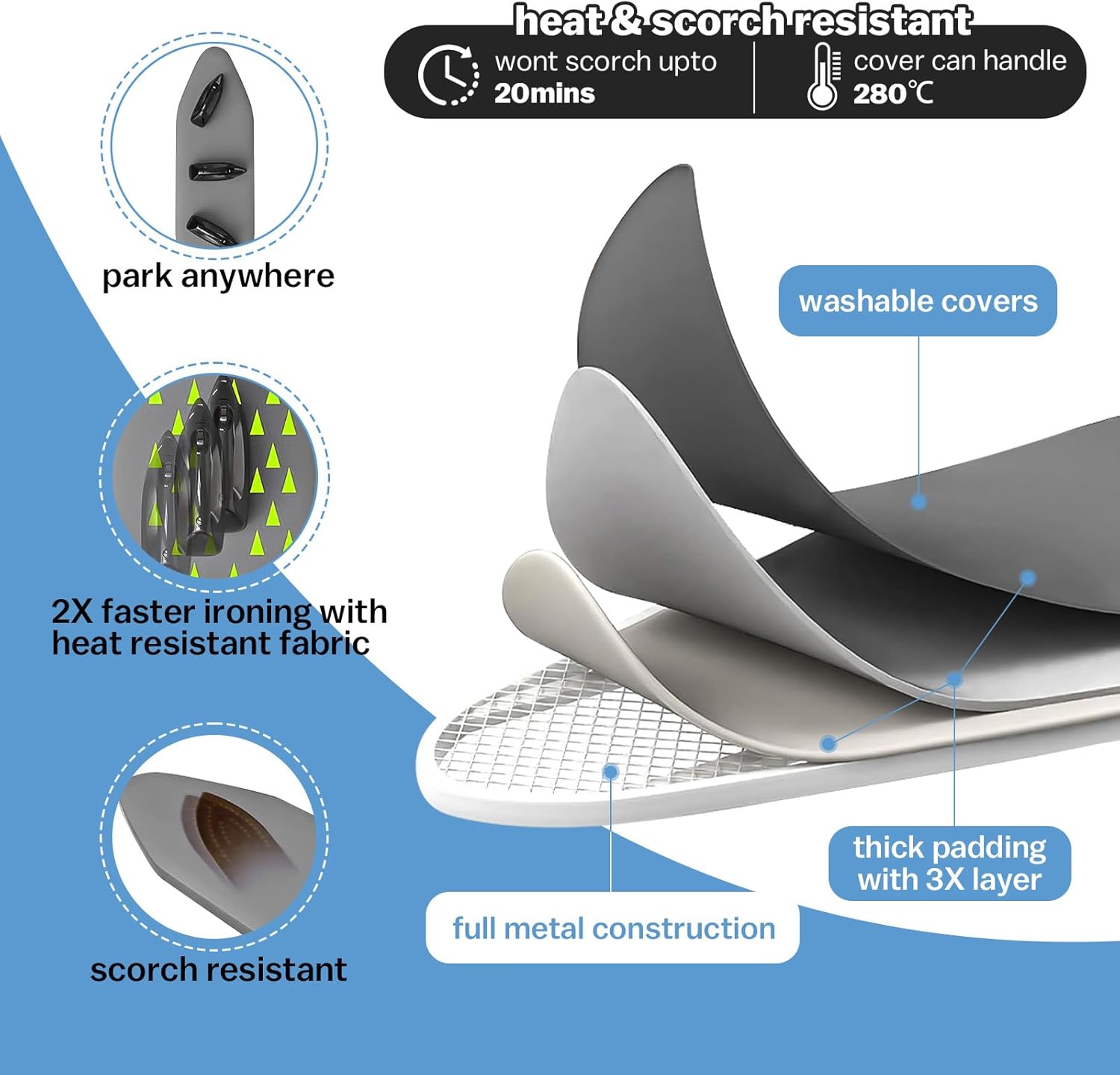 • 【Steam & Electric Iron Friendly】The tabletop ironing board has premium cotton cover and padding are gentle on all fabrics, including delicate garments. No marks, no damage—just a flawless, wrinkle-free finish every time.