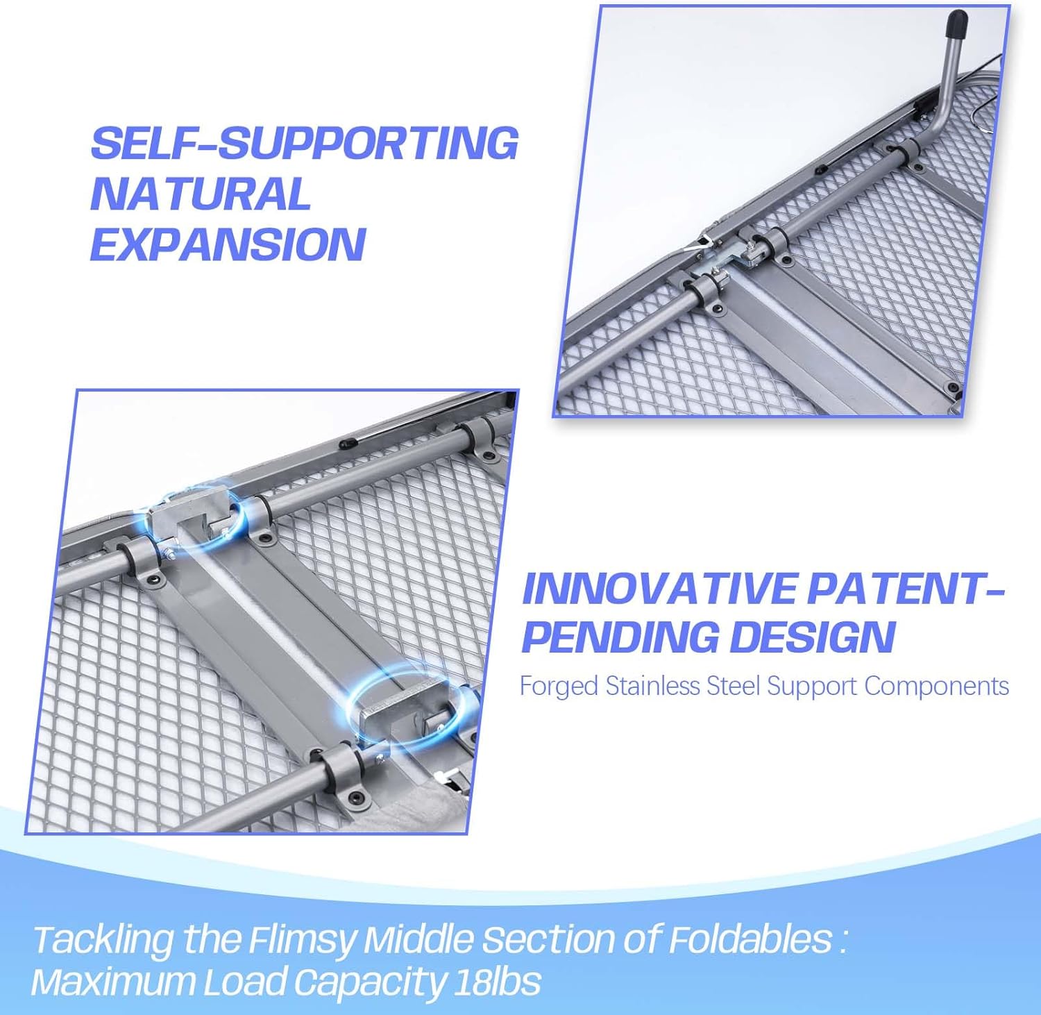 • 【Forged Stainless Steel Supports】The table top ironing board made reinforced stainless steel frame provides unmatched stability (18 lbs max load) and durability. At 5.2 lbs (35% heavier than similar products), it’s built to last.