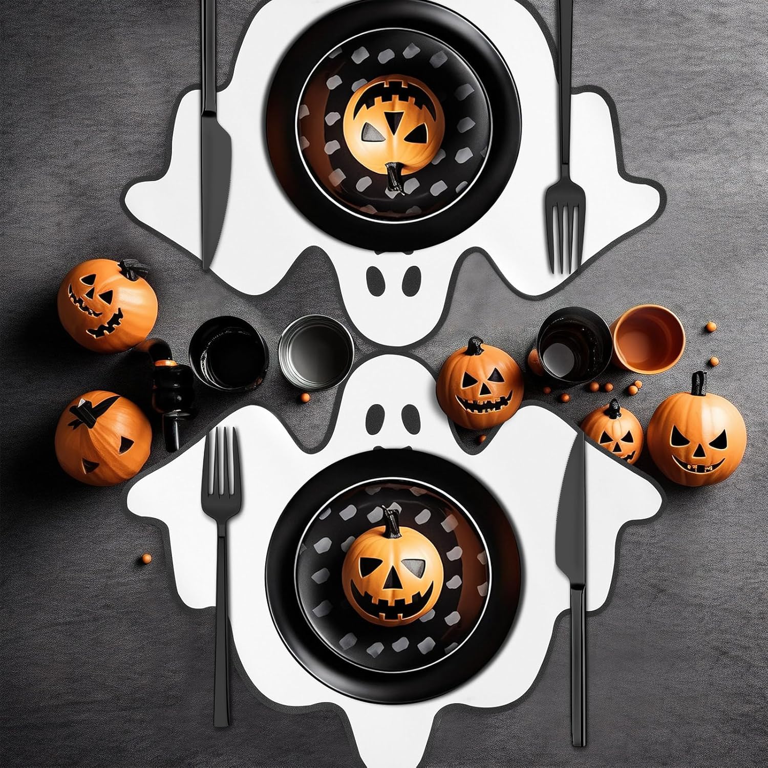 • Cute Ghost Design: our Halloween placemats are printed with classic Halloween ghost elements, the unique ghost pattern is cute and vivid, which can easily decorate your dining table or create a stunning centerpiece for your Halloween table, add fun and festive atmosphere