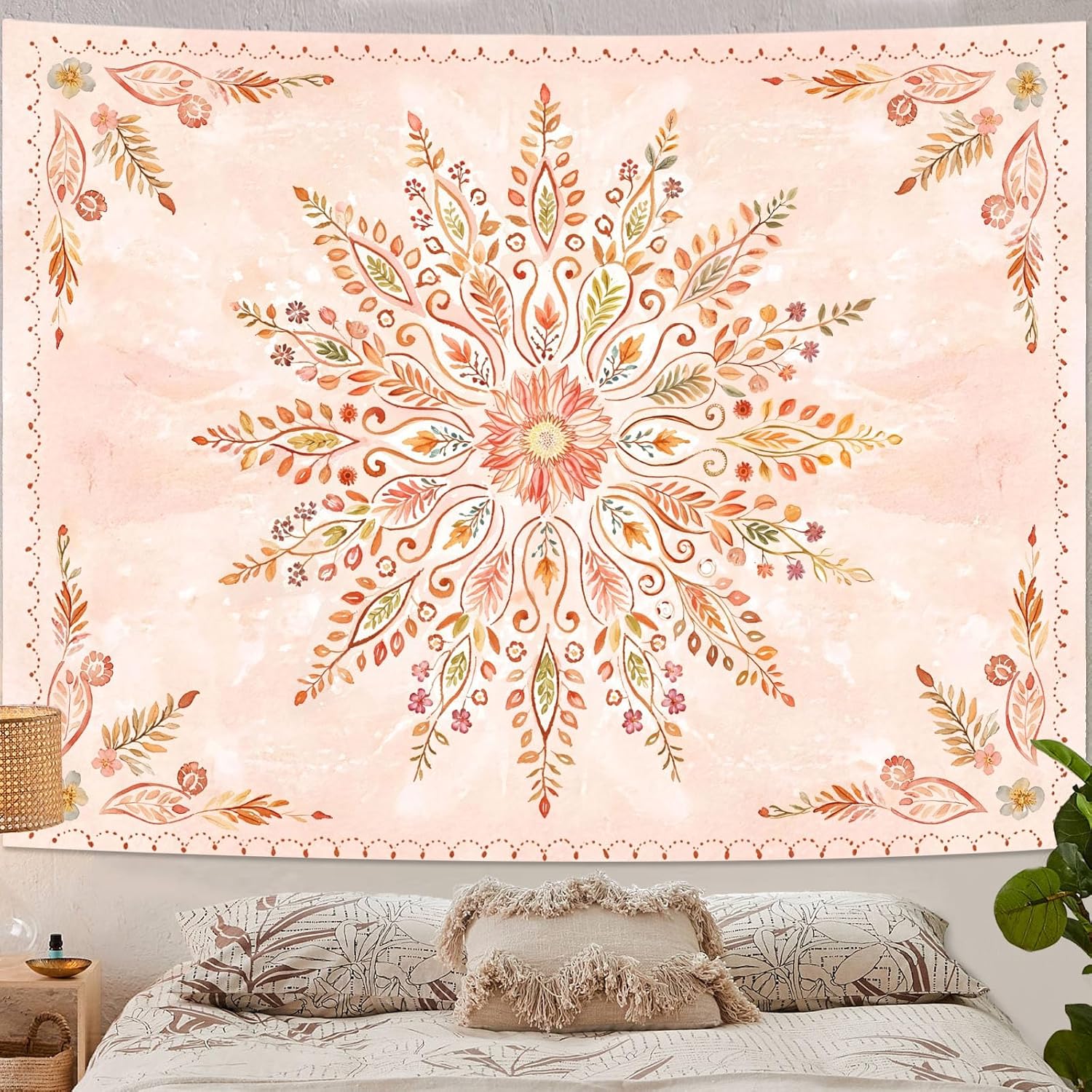 Lunerfex Floral Mandala Tapestry Boho Tapestry for Bedroom Orange Tapestries Wall Hanging Living Room Wall Art and Home Decor 60x80
