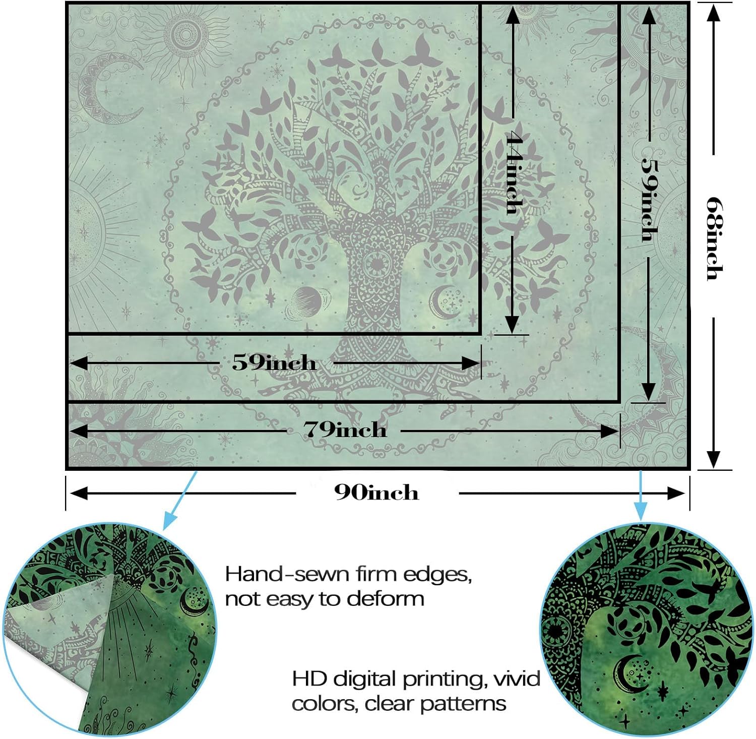 • Available in Three Sizes: Choose from three sizes 44x60, 60x80, and 70x90, allowing flexibility to fit various room dimensions and wall sizes.