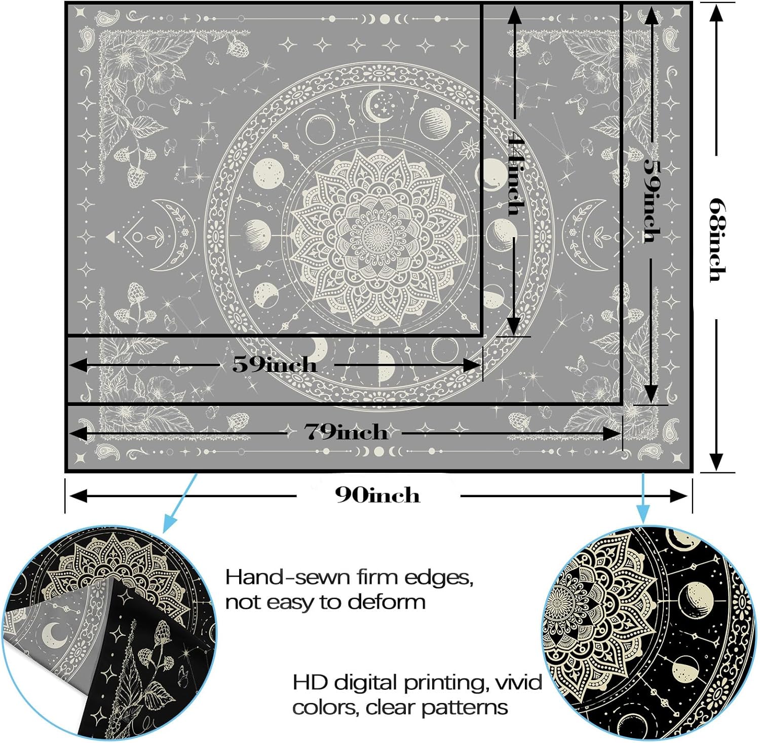 • Unique Mandala Moon Design: This Lunerfex tapestry features an intricate mandala design combined with cosmic elements, creating a mysterious and artistic touch for your bedroom or living room.