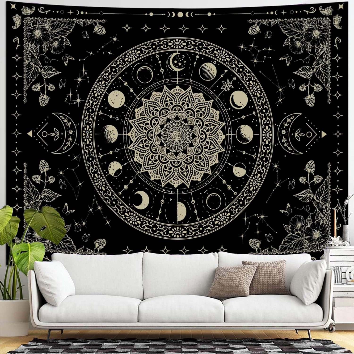 Lunerfex Mandala Moon Tapestry Boho Tapestry for Bedroom Black Tapestries Wall Hanging Living Room Wall Art and Home Decor 70x90