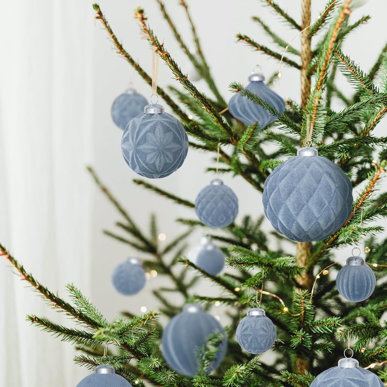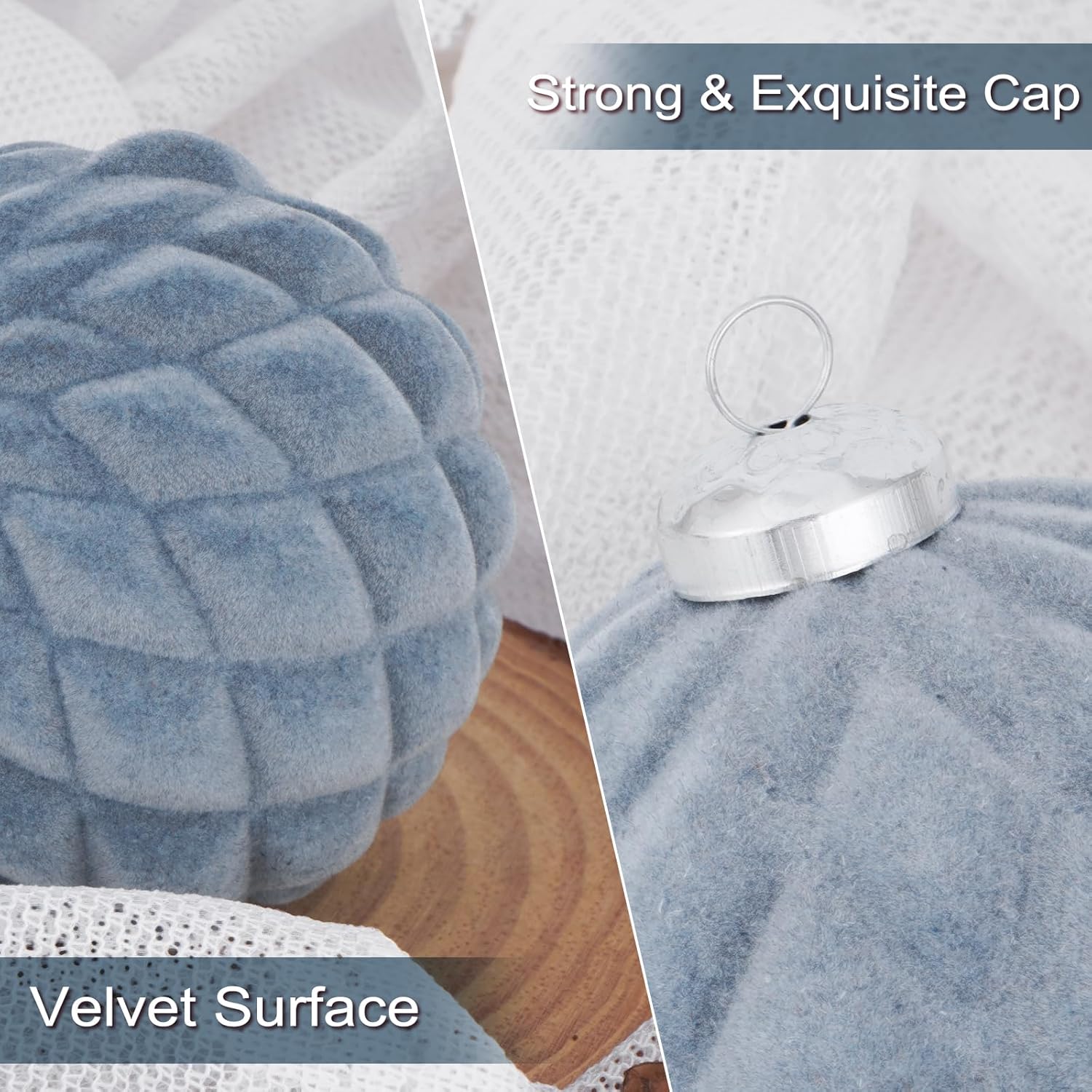 • Luxurious Velvet Texture:Each ornament is covered with soft velvet, giving off a high-end and elegant appearance. This texture not only looks great but also brings a cozy touch, making your home feel like a warm and stylish winter wonderland.
