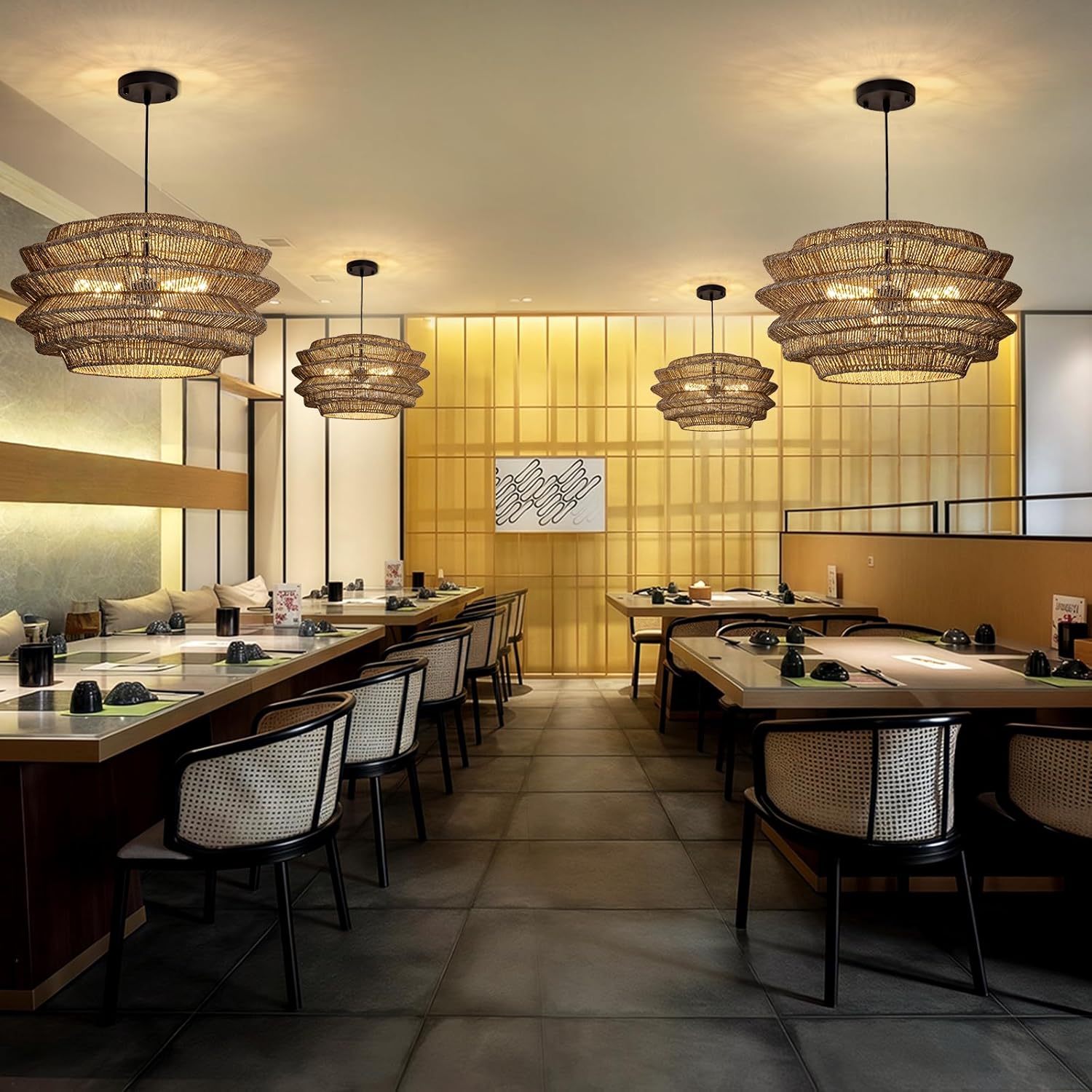 • 【Excellent Design】Natural water plants rattan weave craft, the pendants are made of natural materials. The lights are hand woven with by rattan craft superb skills Seagrass Rattan artists. Decorated with classic tropical style elements, creates a wonderfully new look