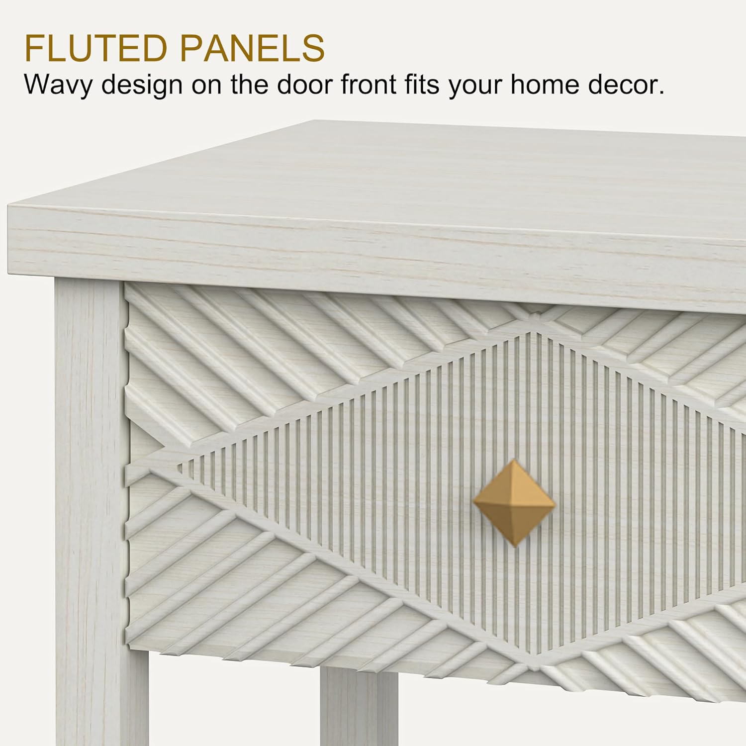 • Diamond Fluted Console Table: Light brown entryway table featuring a woodgrain tabletop with a sophisticated fluted drawer brings depth and texture to space. The refined diamond texture enhances its natural charm, making it an ideal surface for displaying lamps, vases, and picture frames while adding warmth and elegance to home