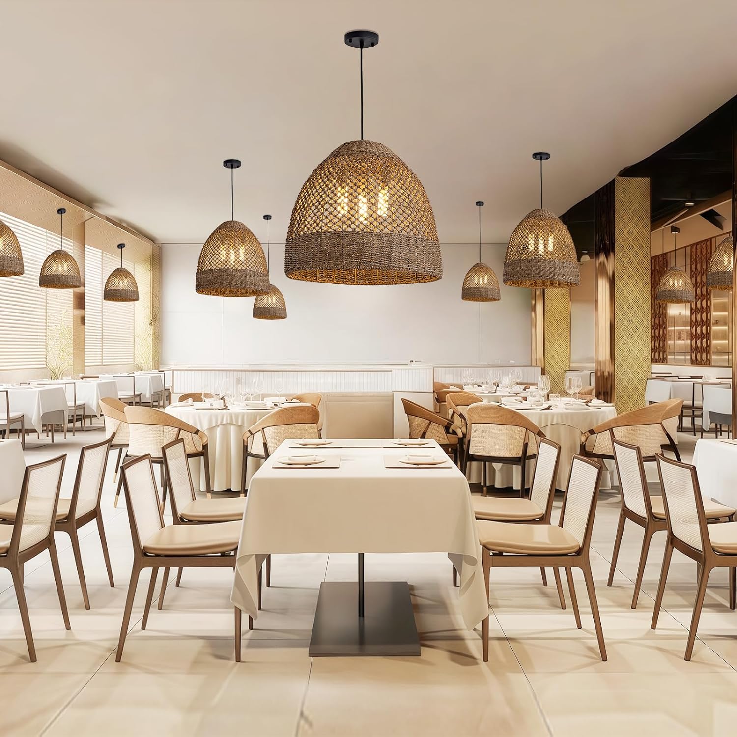 • 【Excellent Design】Natural water plants rattan weave craft, the pendants are made of natural materials. The lights are hand woven with by rattan craft superb skills Seagrass Rattan artists. Decorated with classic tropical style elements, creates a wonderfully new look