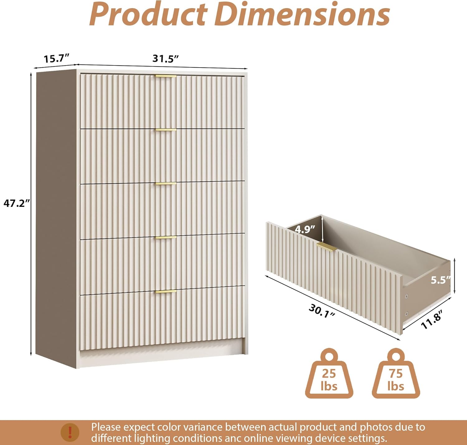 • Safety & Stability: Our fluted dresser features a dual anti-slip design, ensuring drawers stay securely in place, while anti-tipping straps provide added stability. The reinforced base and smooth damping system enhance structural integrity, offering reliable support for everyday storage needs.