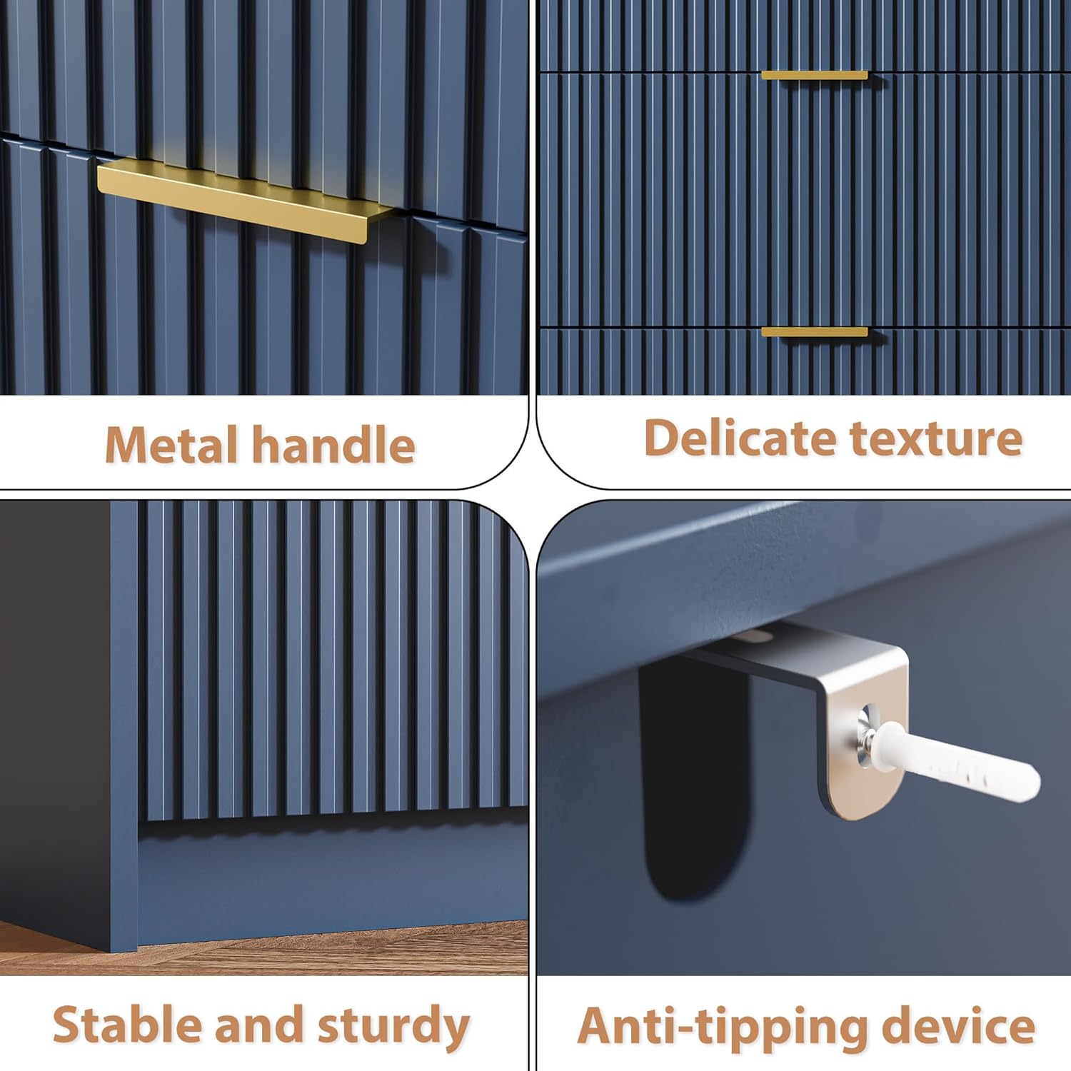 • Safety & Stability: Our fluted dresser features a dual anti-slip design, ensuring drawers stay securely in place, while anti-tipping straps provide added stability. The reinforced base and smooth damping system enhance structural integrity, offering reliable support for everyday storage needs.