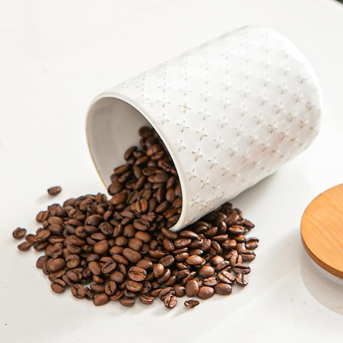 • Simple to Maintain, Built to Last - The canisters’ smooth glazed white ceramic finish makes them simple to clean—just wipe or place in the dishwasher. Hand washing is recommended for the bamboo lids to extend their durability and maintain their snug fit.