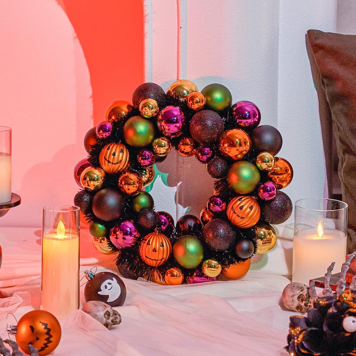 • 🎃 VERSATILE SPOOKTACULAR STYLE - More than Halloween! Its unique ball shape offers year-round versatility: * Halloween: Hang on doors, walls, or gates; use as a haunting centerpiece or shelf accent. * Beyond: Nestle into Thanksgiving centerpieces, incorporate into Gothic Christmas decor, or add dark elegance to bookcases and mantels year-round