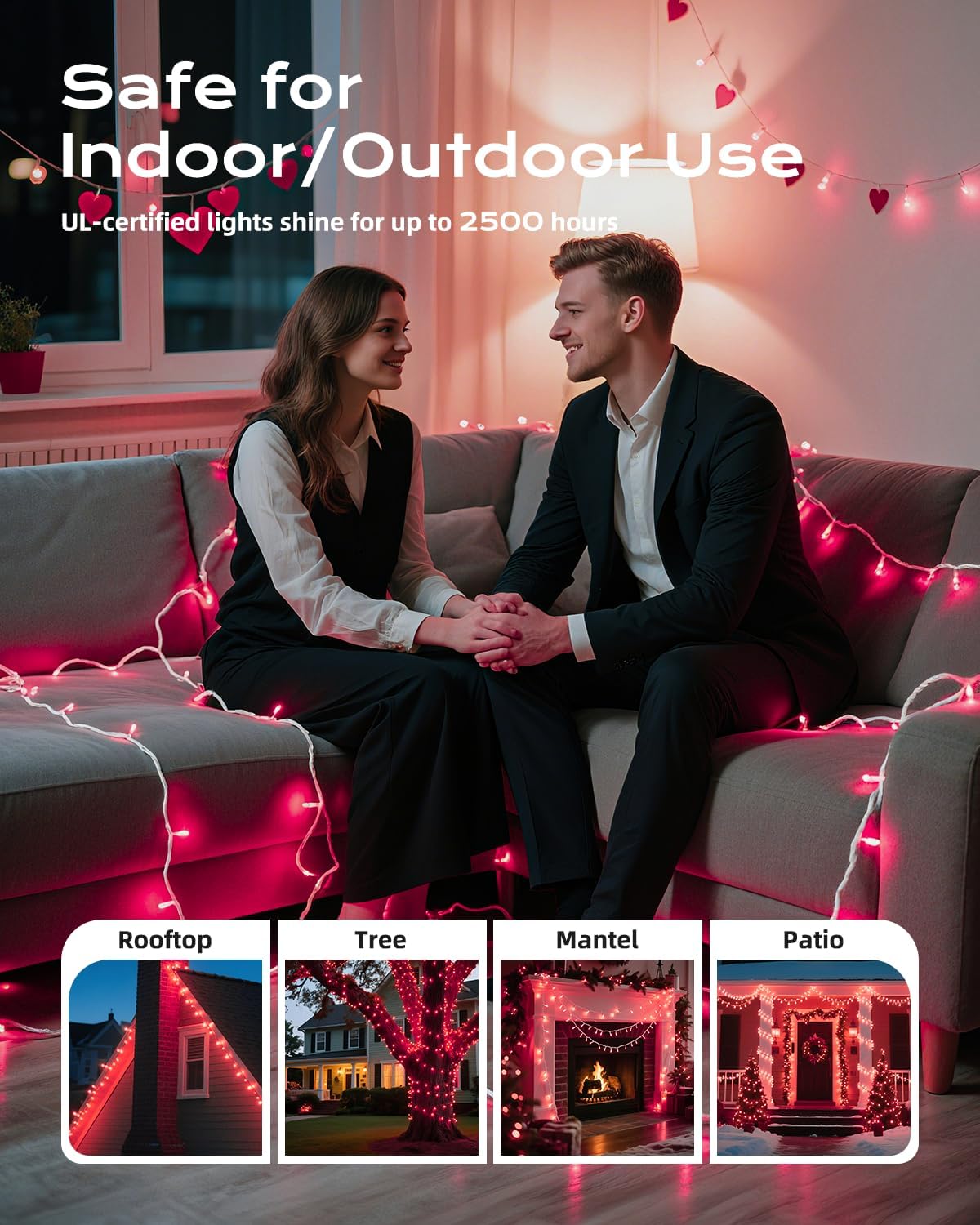 • 【Versatile Indoor and Outdoor Use】Coated with white wire, these 100-count Valentine's Day pink tree lights are suitable for both indoor and outdoor displays. Perfect for adding a festive touch to patios, bedrooms, and seasonal decorations;