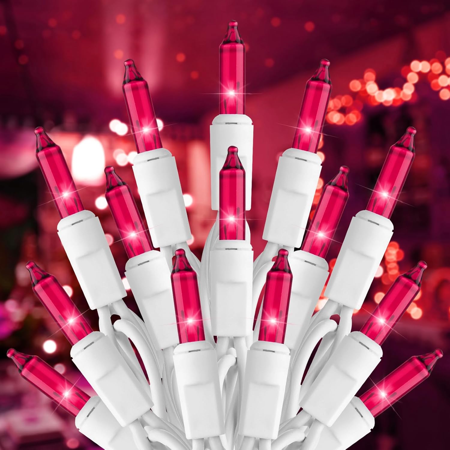 Brightown Pink Mini String Lights, 100-Count 26.5ft Incandescent Bulb Valentine's Day Fairy Lights for Indoor Holiday Decoration, Christmas Tree Garland Wedding Party Multi-Use Decor, White Wire
