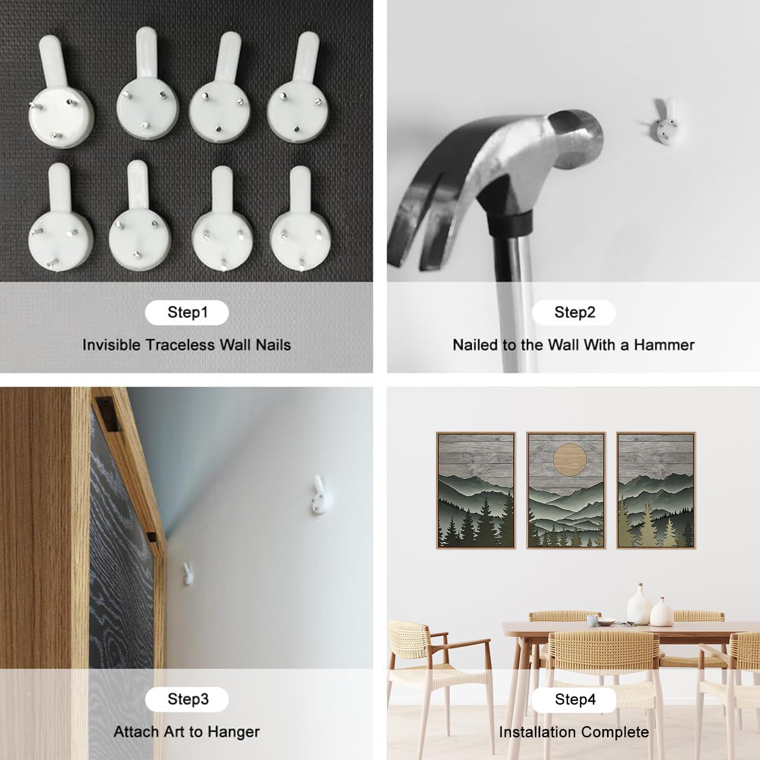• 【Mountain Wall Art】Elevate the atmosphere of your home with the HLNIUC green mountain decorative paintings.This landscape painting is divided into three panels, creating a seamless panoramic view of mountains, forests and sun that brings the beauty of nature into your home. This will fill your home with a peaceful and natural atmosphere.Each print is expertly framed and ready to hang, making it a focal point in any room.