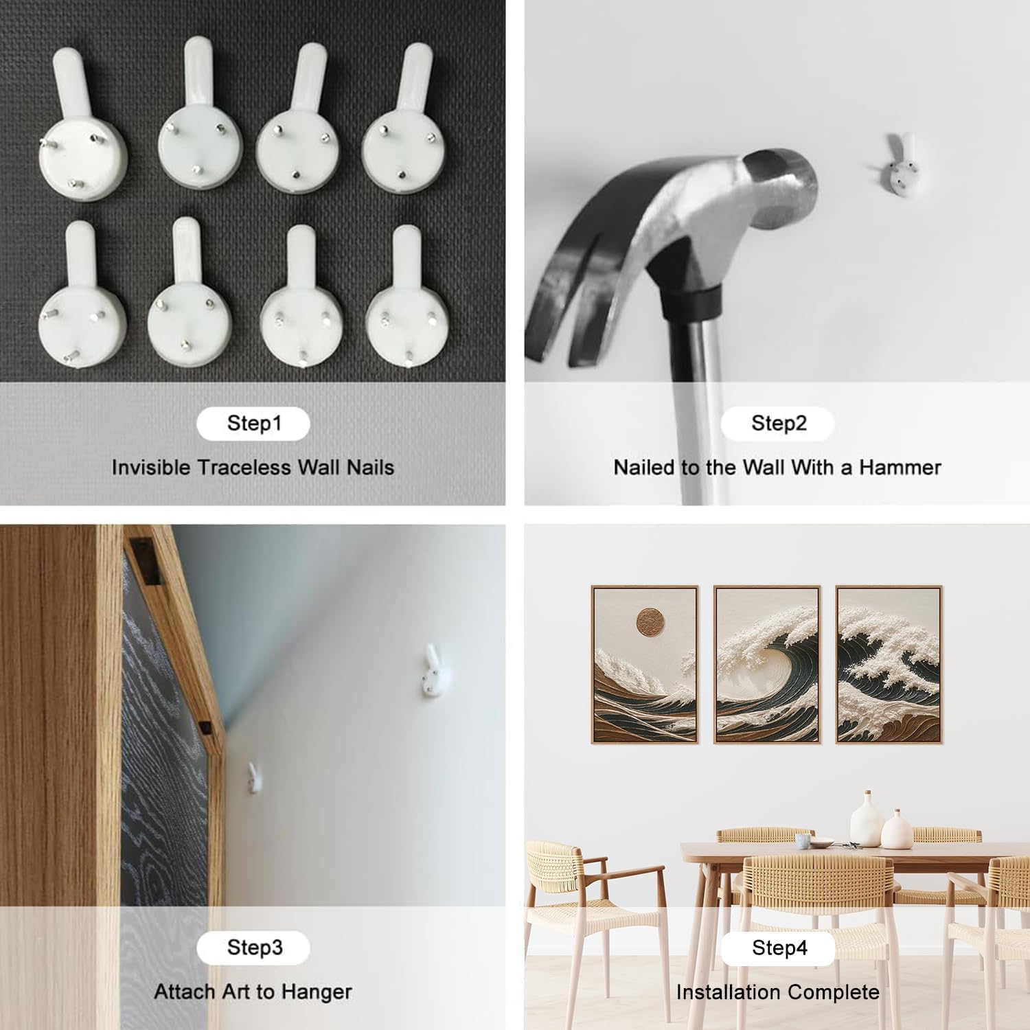 • 【Simple To Install】Each of these three abstract waves landscape art prints pieces measures 16x24inches. It comes with all the necessary accessories so it's simple and easy to install. Simply choose where you want to decorate, make sure it's level and aligned the way you want it, and then nail it down with non-marking nails.