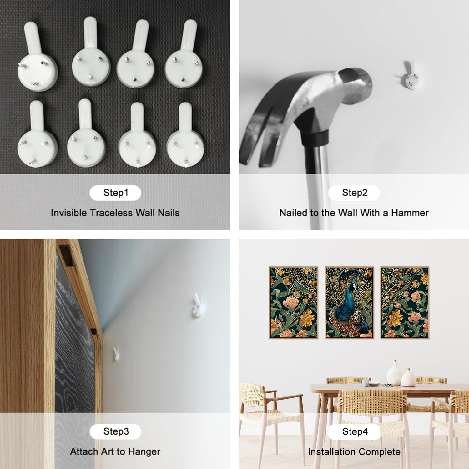 • Simple To Install: Each of these three beautiful flower and peacock art prints pieces measures 16x24inches. It comes with all the necessary accessories so it's simple and easy to install. Simply choose where you want to decorate, make sure it's level and aligned the way you want it, and then nail it down with non-marking nails.