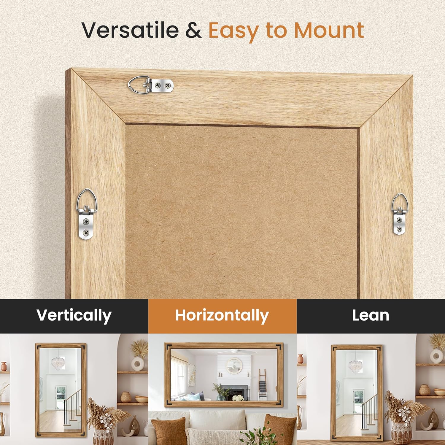 • High-Quality Craftsmanship: Our mirror frame is crafted from premium, solid wood, ensuring its durability and longevity. Built to last, this mirror features a premium 5mm silver-backed glass that ensures HD clarity with no distortion. The explosion-proof and scatter-prevention design provides added safety, making it a reliable choice for any home.