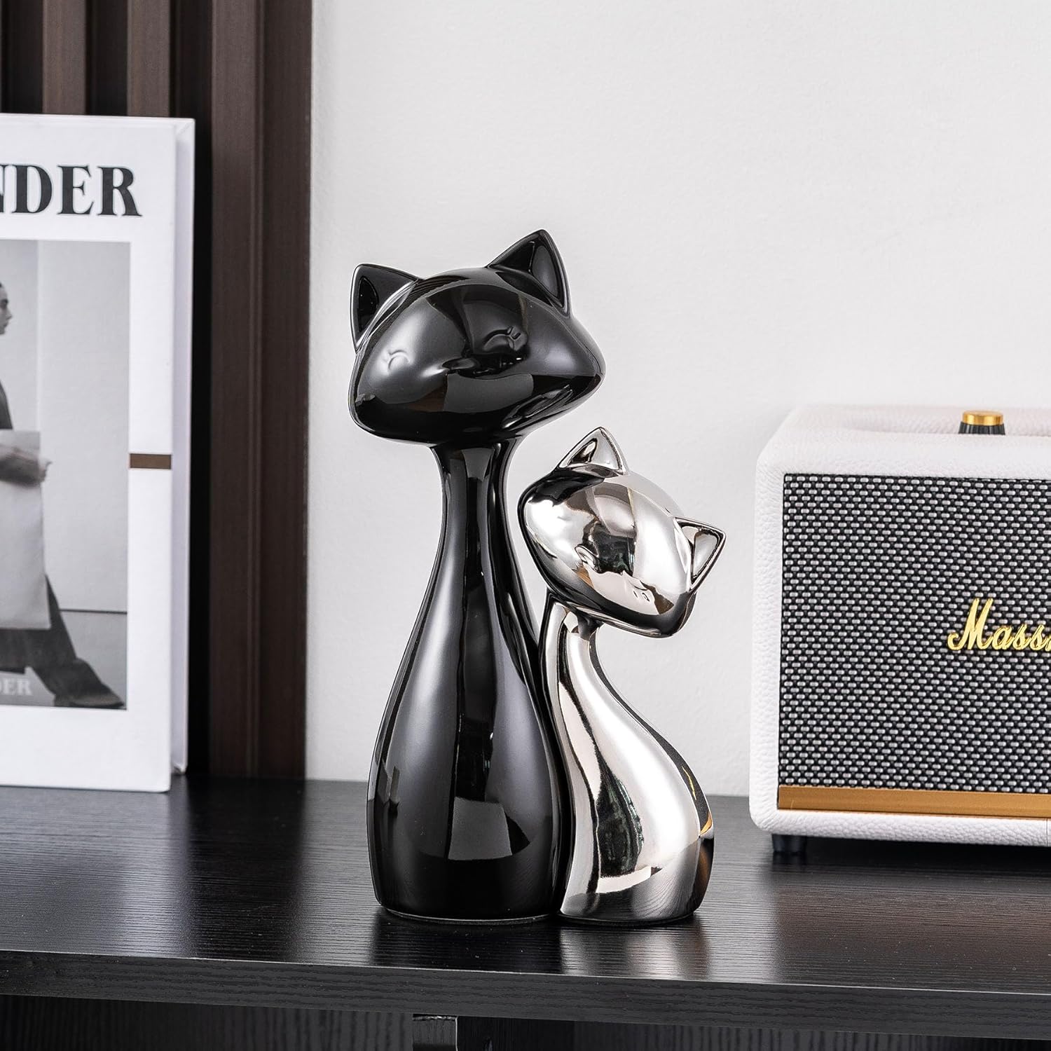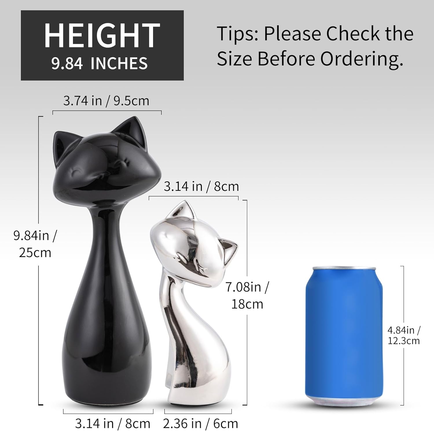• ‌Elegant Contrast Design‌: This pair blends ‌glossy black ceramic decor‌ with ‌electroplated silvery accents‌, creating a mesmerizing modern decor statement. Crafted for cat lovers seeking sophisticated desk decorations or living room focal points, the dynamic black & silver palette elevates any space with artistic feline charm.