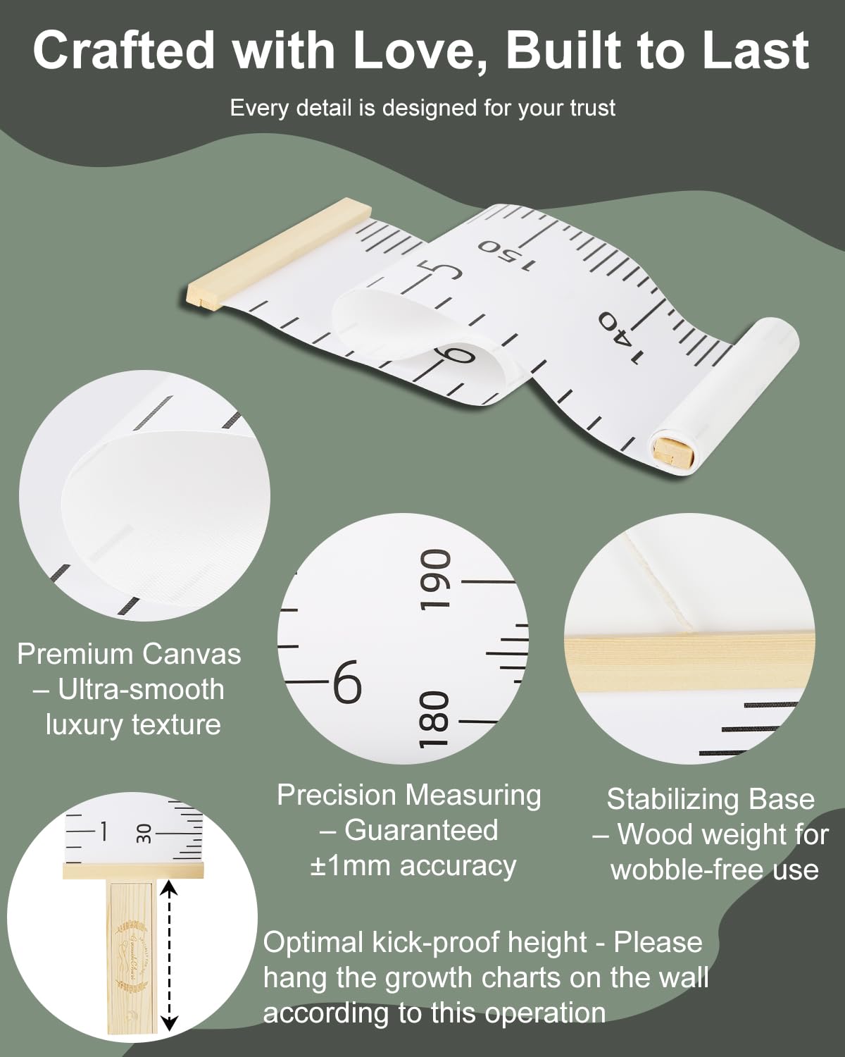 • ✨Easy-to-Use & Durable Marker – Easily record your child's height measurements using the included marker on our portable growth chart, creating lasting milestones from toddler to teen years. A baby essential that turns every kid's height tracker moment into a celebration!