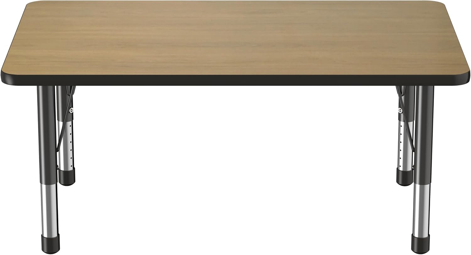 Factory Direct Partners FDP Rectangle (30 x 48 inch) Classroom Table with Adjustable Chunky Toddler Legs (15-24 in); Preschool, Kinder and Daycare Furniture - Pasadena Oak Top/Black Edge and Legs