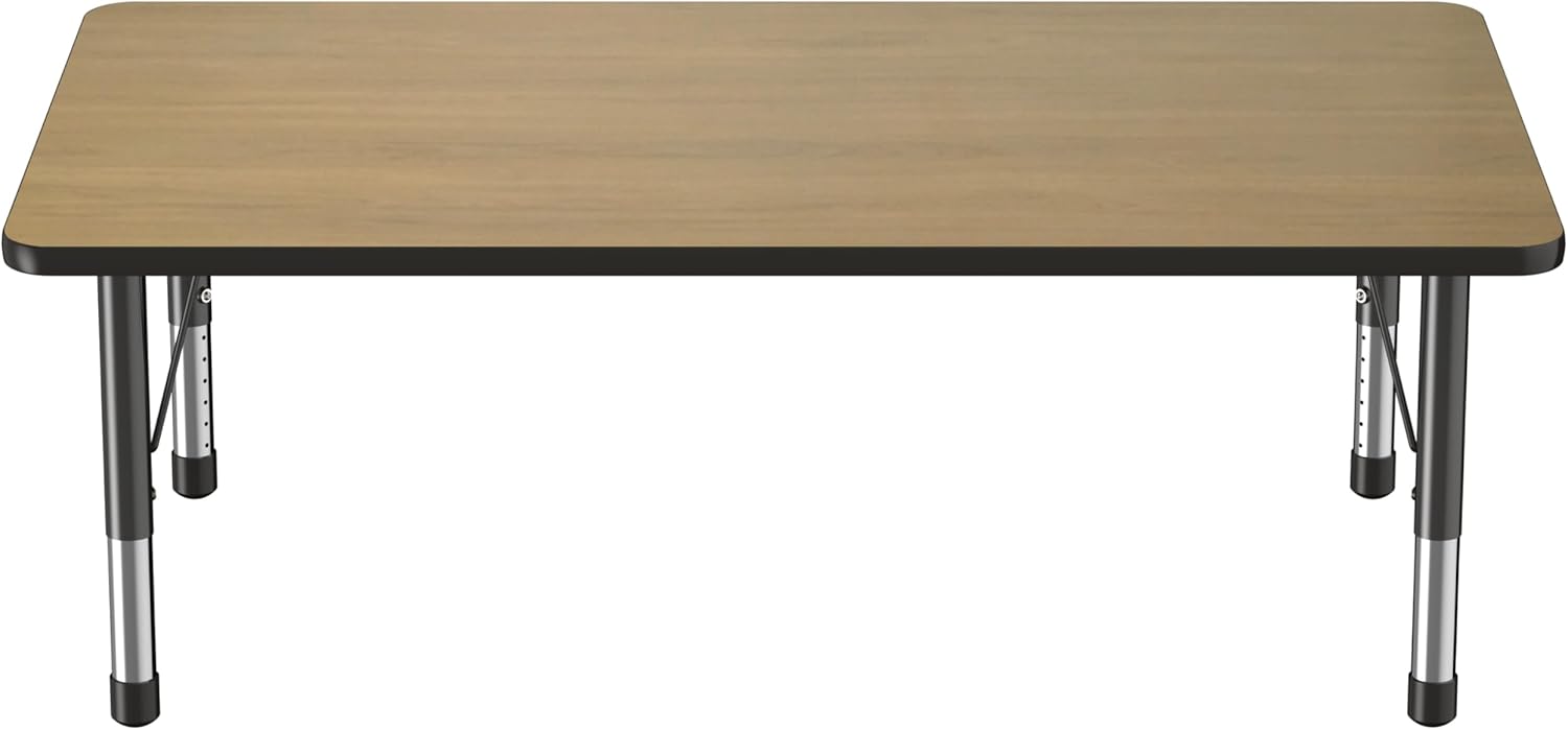 Factory Direct Partners FDP Rectangle (36 x 60 inch) Classroom Table with Adjustable Chunky Toddler Legs (15-24 in); Preschool, Kinder and Daycare Furniture - Pasadena Oak Top/Black Edge and Legs