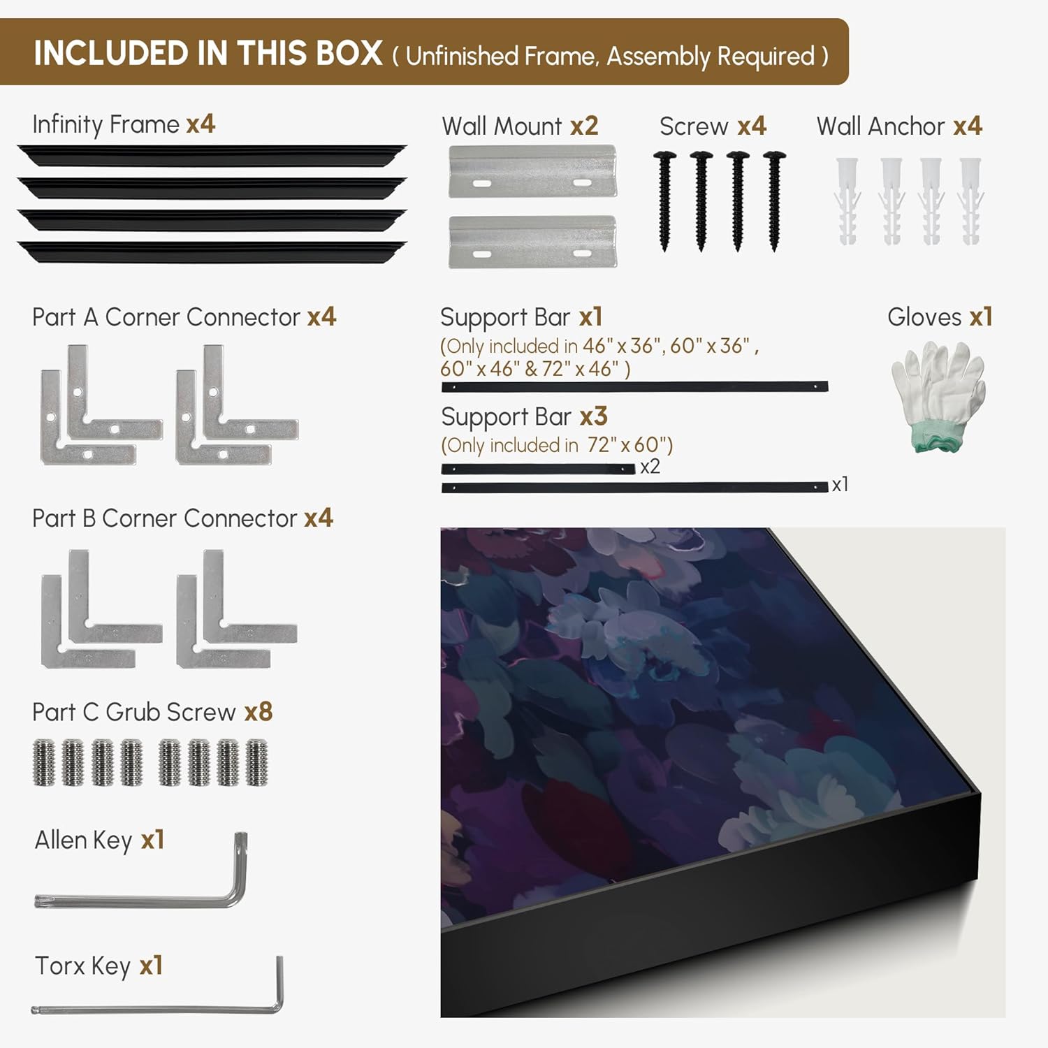 • Assembly Required: The artwork comes with the frame components unassembled. Don¡¯t worry ¡ª setup is straightforward and tool-friendly. For best results and accurate alignment, we recommend two people to ensure a smooth assembly and a stable, secure wall mount.