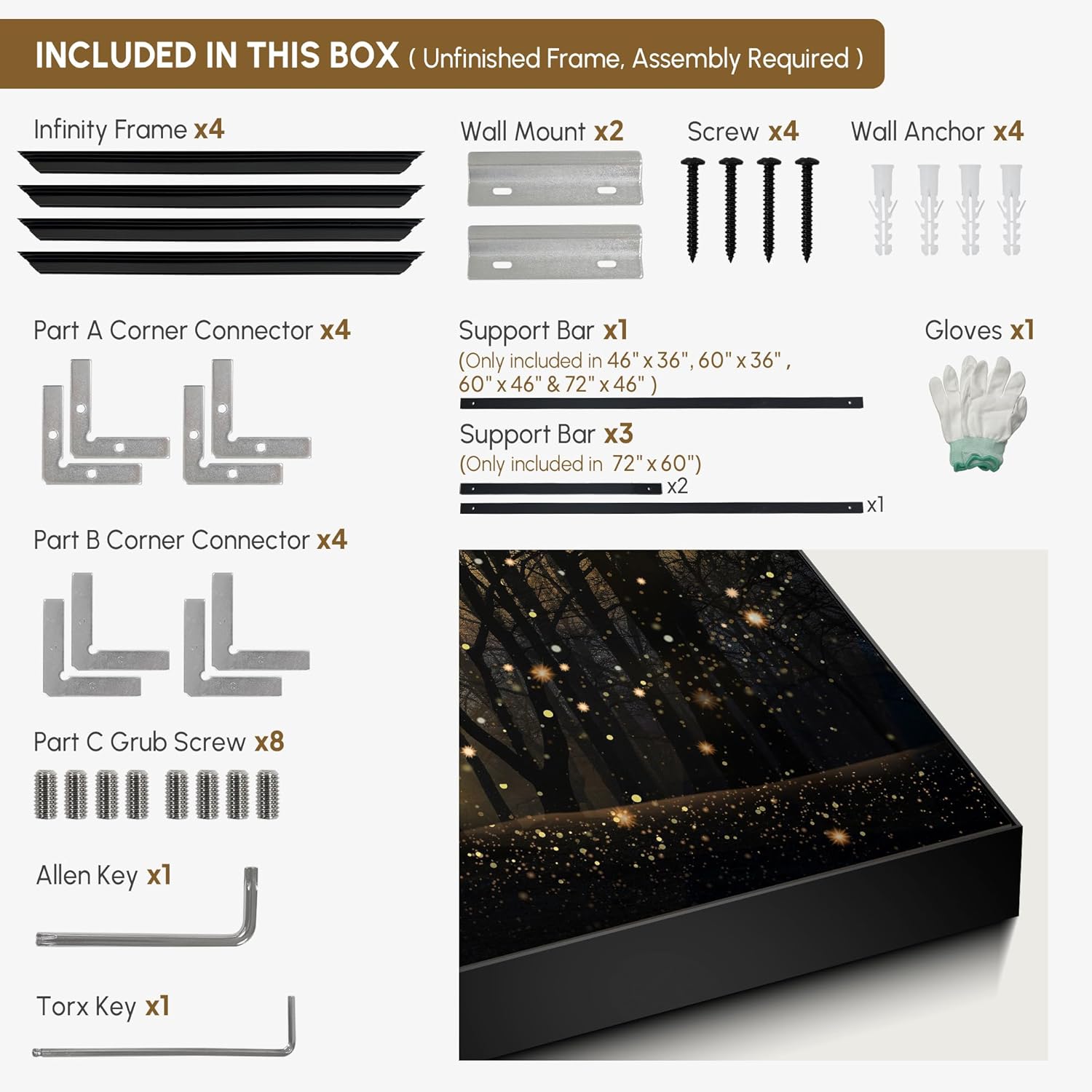 • Assembly Required: The artwork comes with the frame components unassembled. Don¡¯t worry ¡ª setup is straightforward and tool-friendly. For best results and accurate alignment, we recommend two people to ensure a smooth assembly and a stable, secure wall mount.