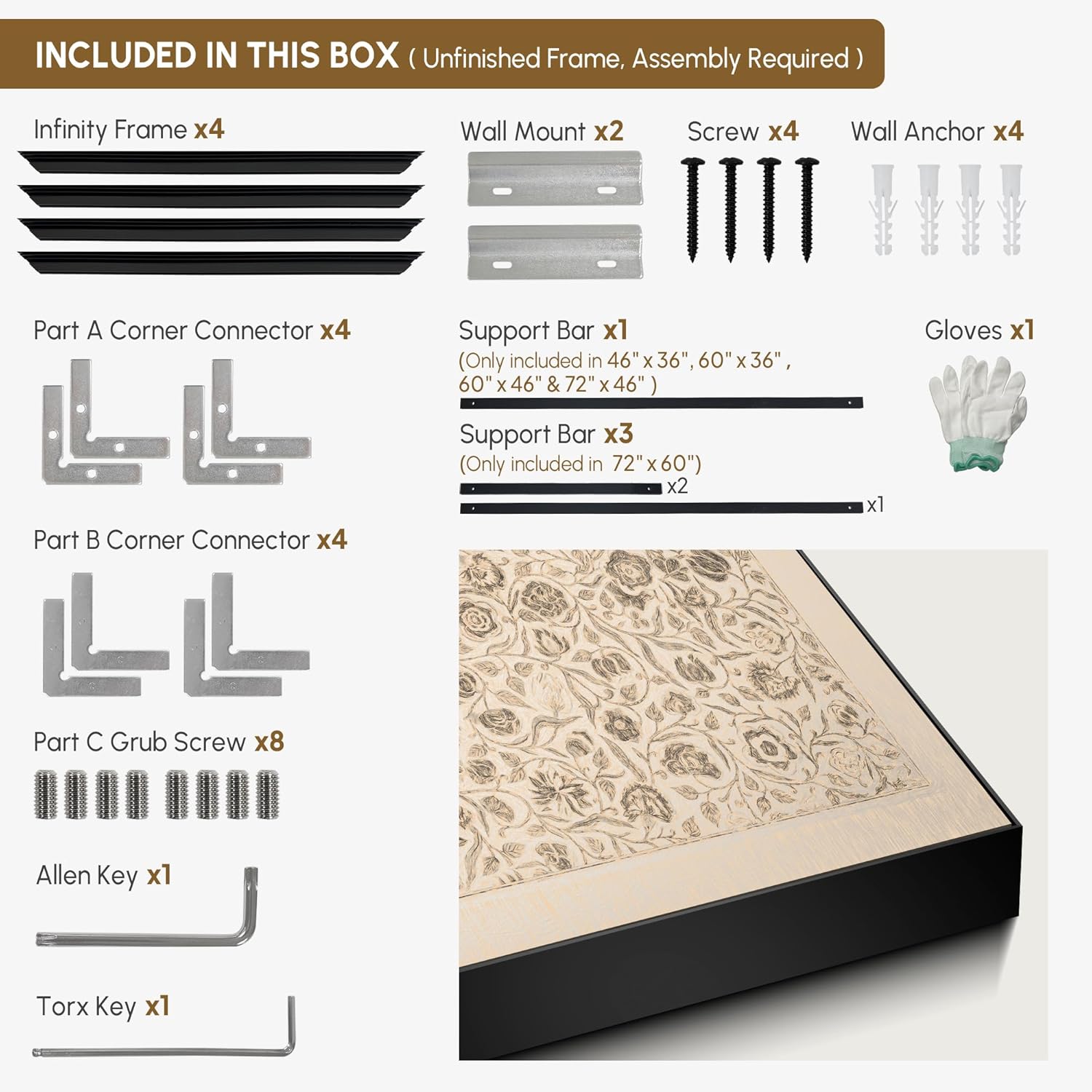 • Assembly Required: The artwork comes with the frame components unassembled. Don¡¯t worry ¡ª setup is straightforward and tool-friendly. For best results and accurate alignment, we recommend two people to ensure a smooth assembly and a stable, secure wall mount.